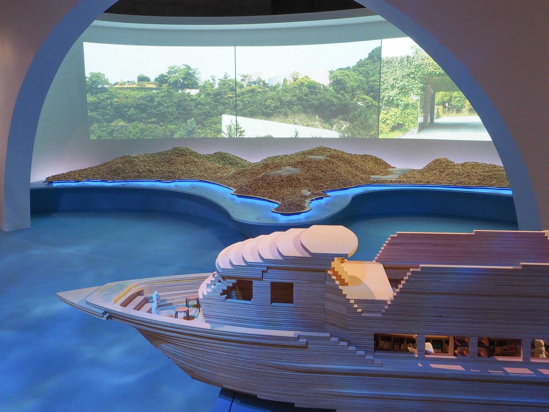 今回の展示では、1992年「ベネッセハウス ミュージアム」から、1995年「ベネッセハウス オーバル」、1999年「家プロジェクト『南寺』」、2004年「地中美術館」、2006年「ベネッセハウス パーク」「ベネッセハウス ビーチ」、2010年「李禹煥美術館」、2013年「ANDO MUSEUM」、2020年「ヴァレーギャラリー」、そして今年5月31日にオープンした「直島新美術館」まで、10もの建築を一望にします。生物が増殖するように成長を重ねる、このアートと建築のコンプレックスの37年に及ぶ物語を、模型と音楽映像が一体となった空間インスタレーションで魅せています。