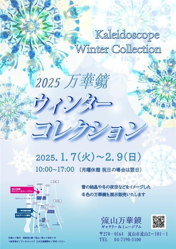 「2025年 万華鏡ウィンターコレクション」(主催:株式会社流山ツーリズムデザイン)は、2025年1月7日(火)~ 2月9日(日)まで、国登録有形文化財 流山万華鏡ギャラリー&ミュージアムにて開催します。