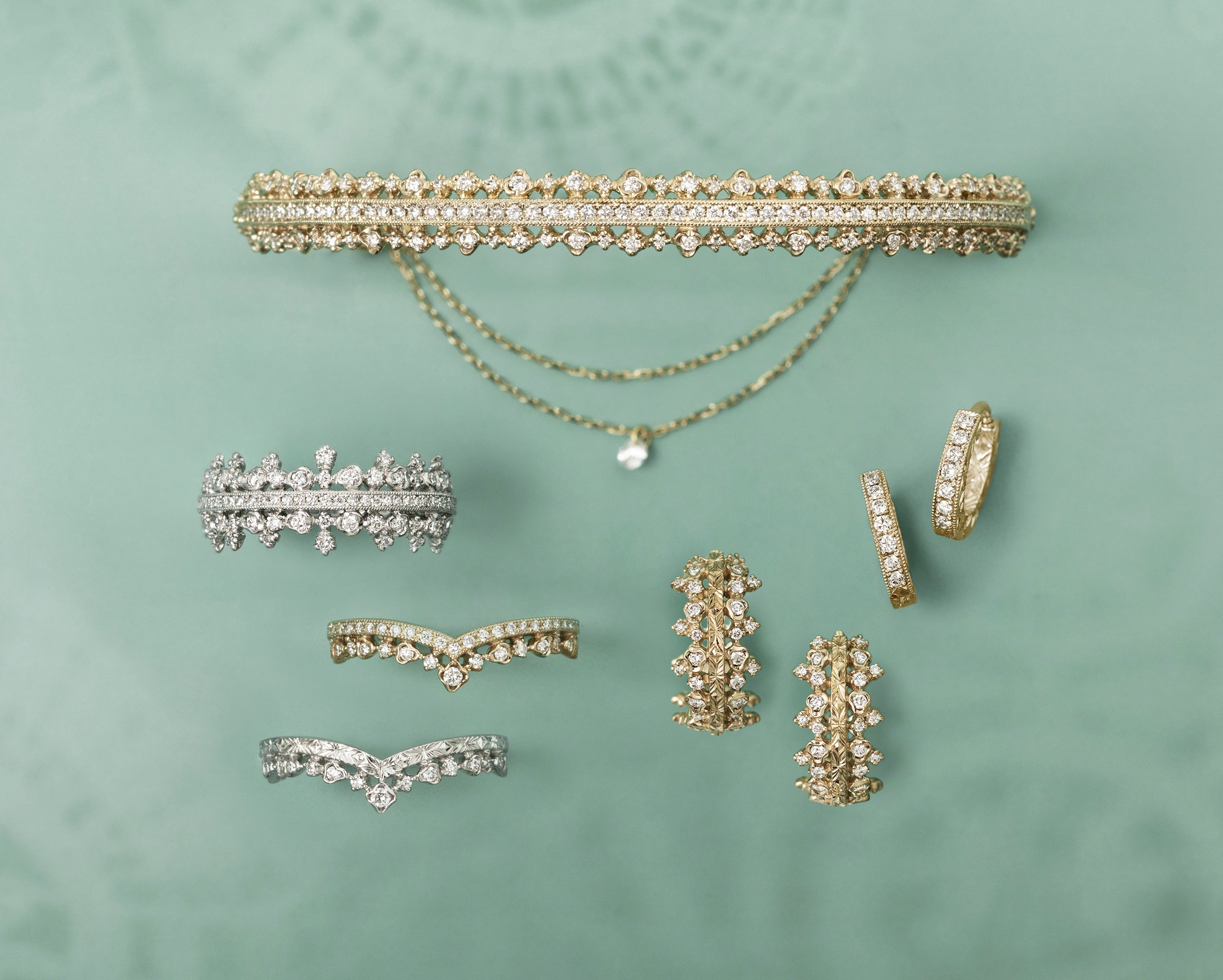 手仕事による精緻な金細工や彫模様が織りなす繊細なジュエリーは、ブランドを象徴するアイコニックなコレクションのひとつでもあり、さらなる進化を続けています。