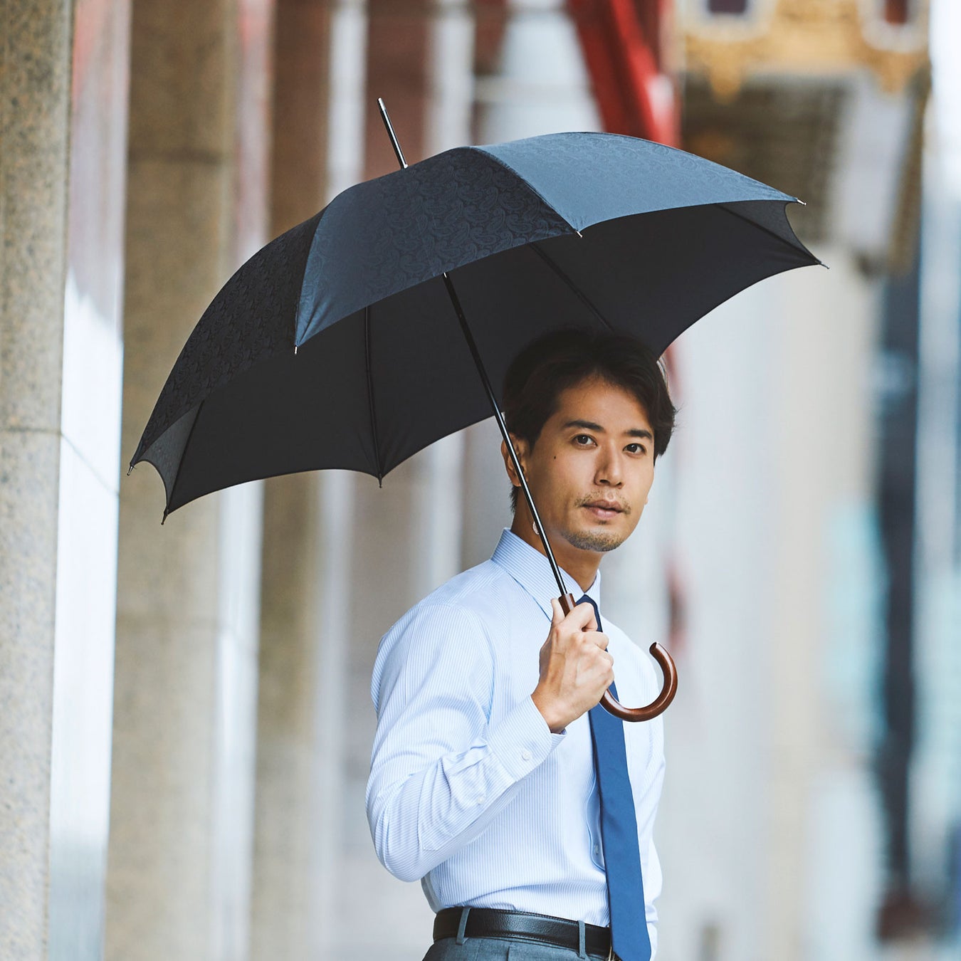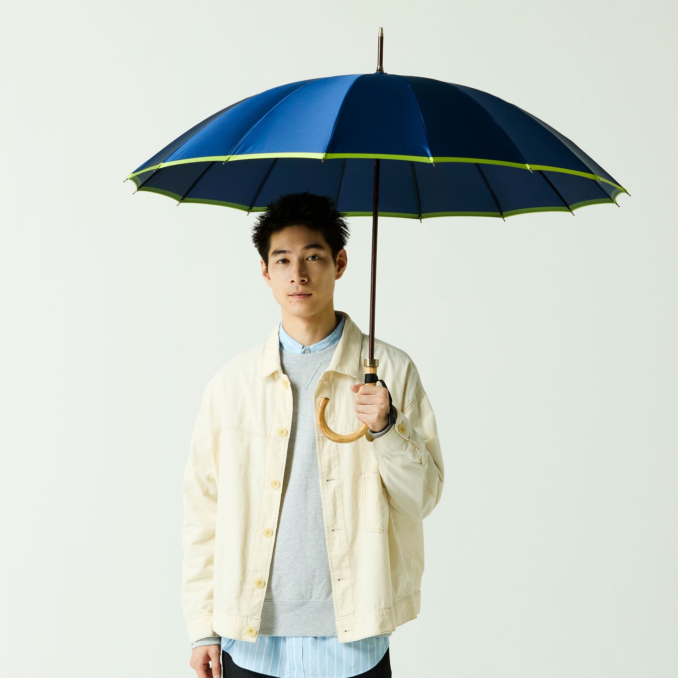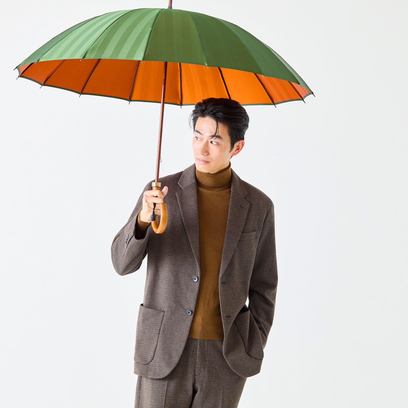 奇をてらわない洗練されたシルエットは、日常使いはもちろんのことビジネス、フォーマルな場でも遜色なくお使いいただけます。骨の本数もさまざまで、円形に近い16本骨傘やクラシカルな8本骨傘など、バリエーション豊富に取り揃えております。傘と手元(ハンドル)の組み合わせもお好みに応じて自由自在。シンプルな傘には個性的な手元、色味を統一すればスタイリッシュな一本に。他にはない特別な傘に仕上がります。