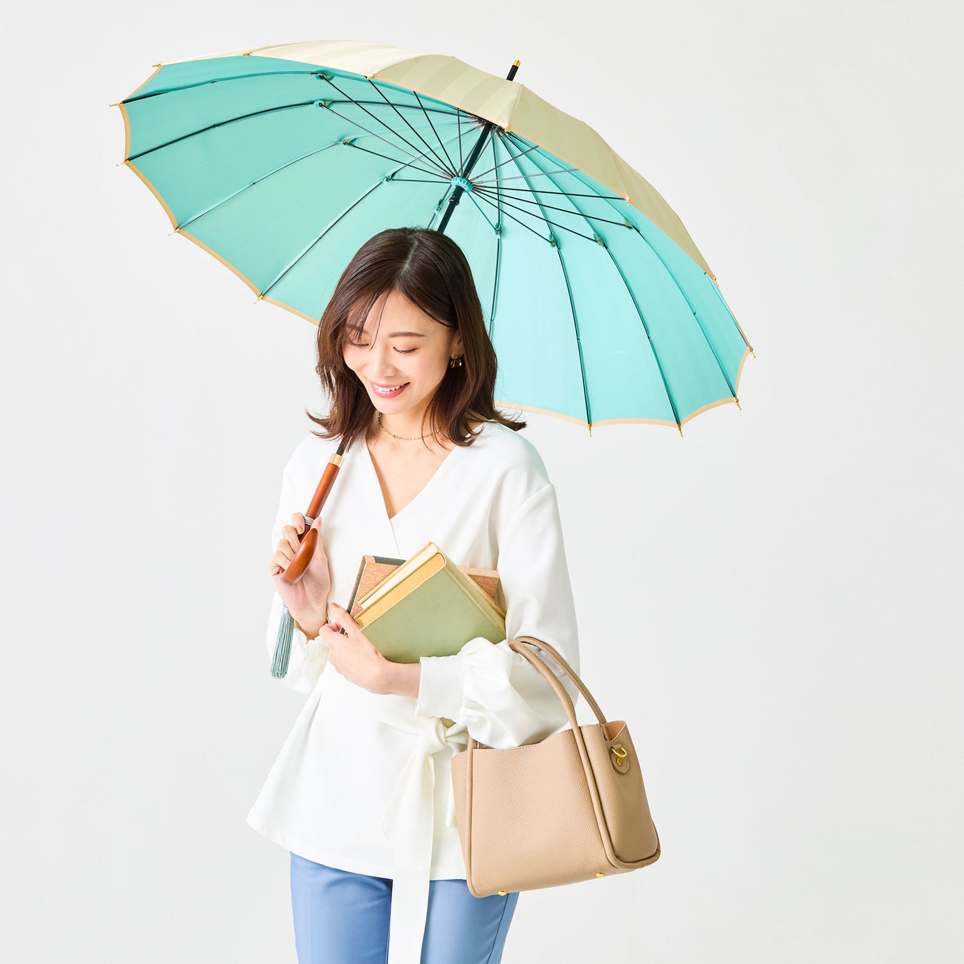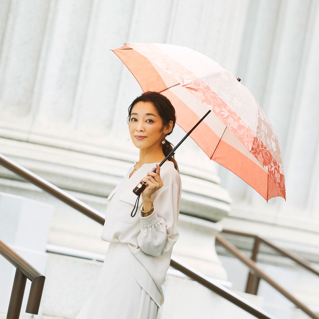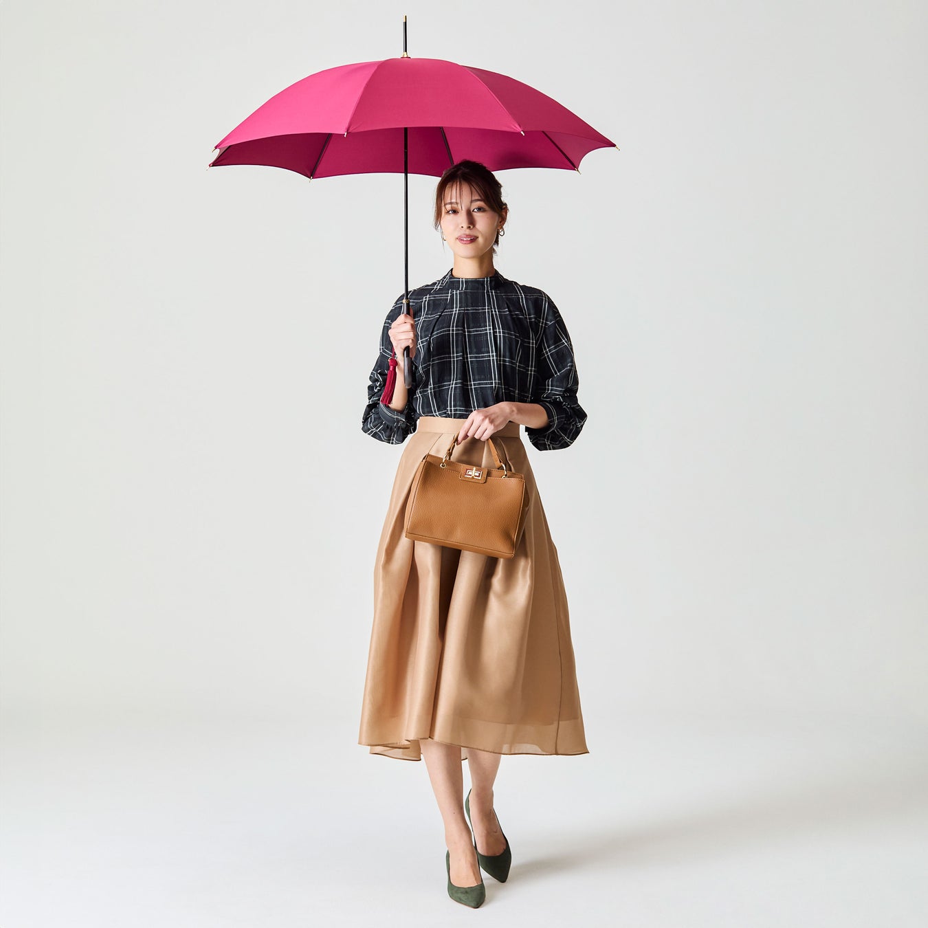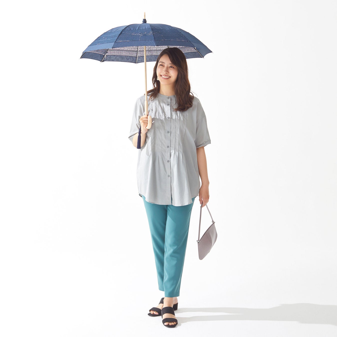 携えるだけで持ち主をクラスアップさせてくれる、前原の「日傘」。精緻なレースや二重張り、テキスタイルの素材や天然の質感にこだわっています。また炎天下でも体感が楽に過ごせる“一級遮光”と突然の雨にも対応できる“防水性”を併せ持つ便利な「晴雨兼用傘」。機能性とともに前原らしい品格も兼ね備えています。