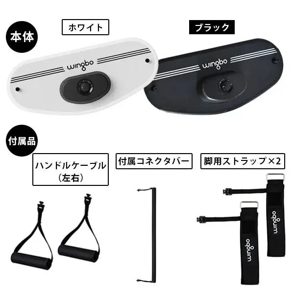Wingboの最大の特長は、高機能ながら圧倒的にコンパクトなボード構造。ケーブルと3種のアタッチメントを自由に組み合わせることで、上半身・下半身・体幹など、全身の筋肉をバランスよく鍛えることが可能です。