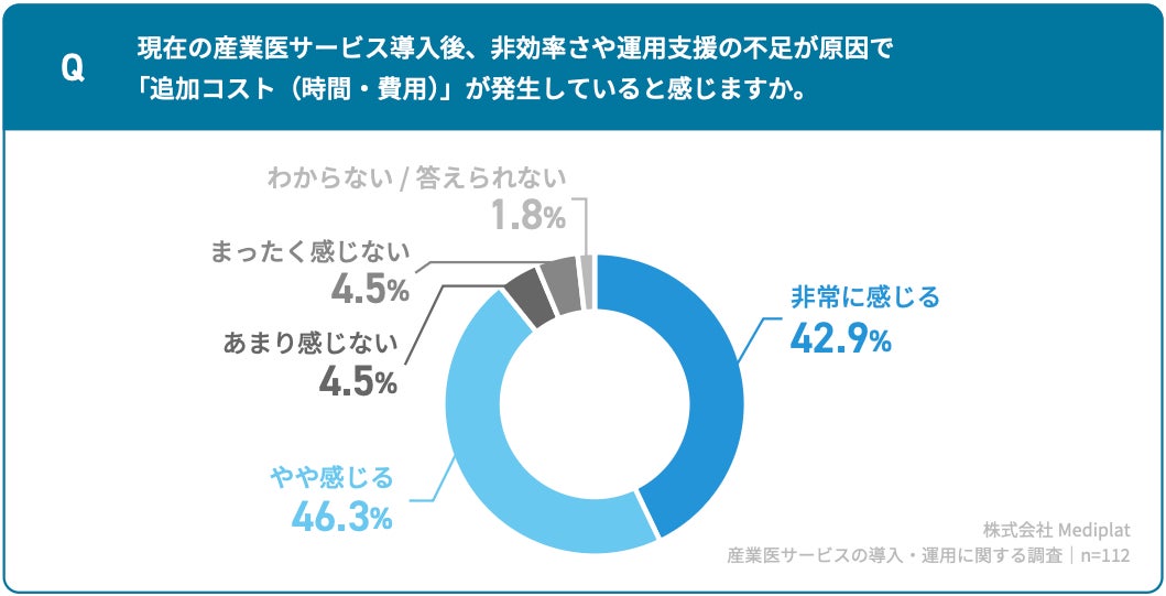 Q.現在の産業医サービス導入後、非効率さや運用支援の不足が原因で「追加コスト(時間・費用)」が発生していると感じますか。(n=112)