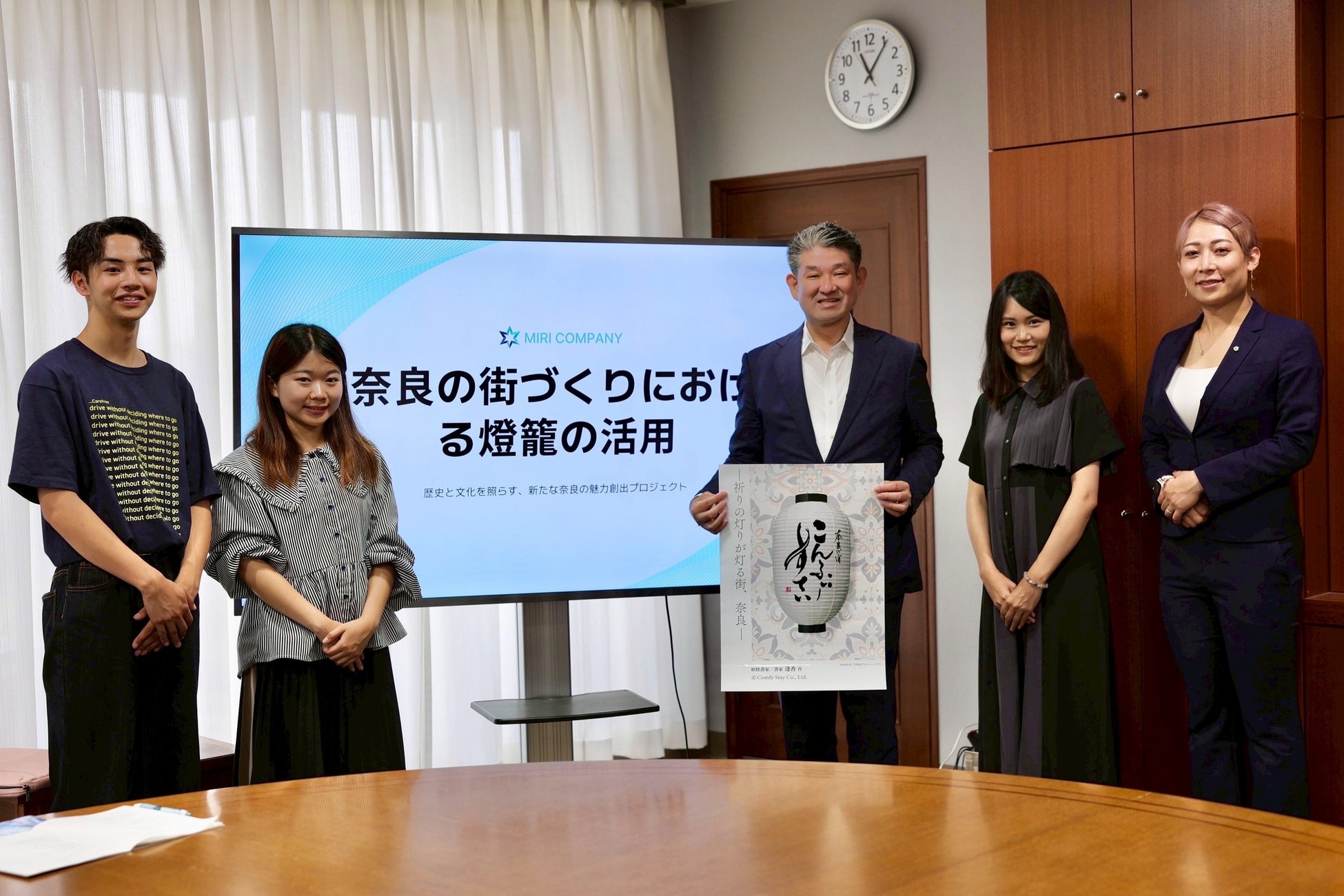 2025年7月2日には奈良市役所を訪れ、提灯イメージ図を仲川げん奈良市長に披露いたしました。地域文化の魅力発信や観光振興について意見交換を行いました。