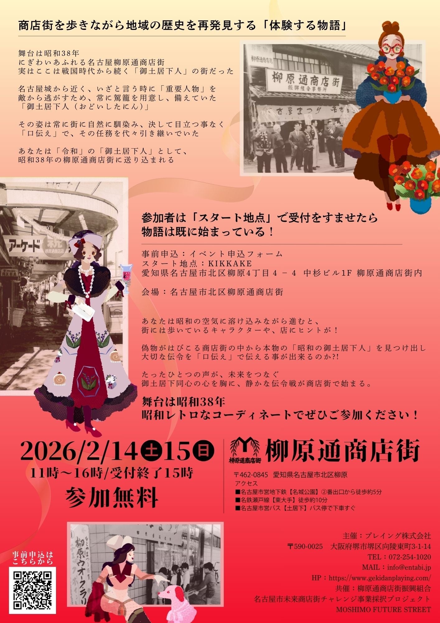 プレイング株式会社(大阪府堺市、代表取締役:山本知史)は、名古屋市北区・柳原通商店街で、観光客参加型ドラマアトラクション『エンタビ(R)』を制作します。