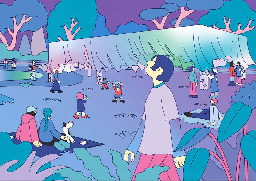 「2.8万年先の未来をどんな毎日で明るくする?」あなたが芝生広場で見上げる星々の光は、遠い過去に放たれたものだといわれます。