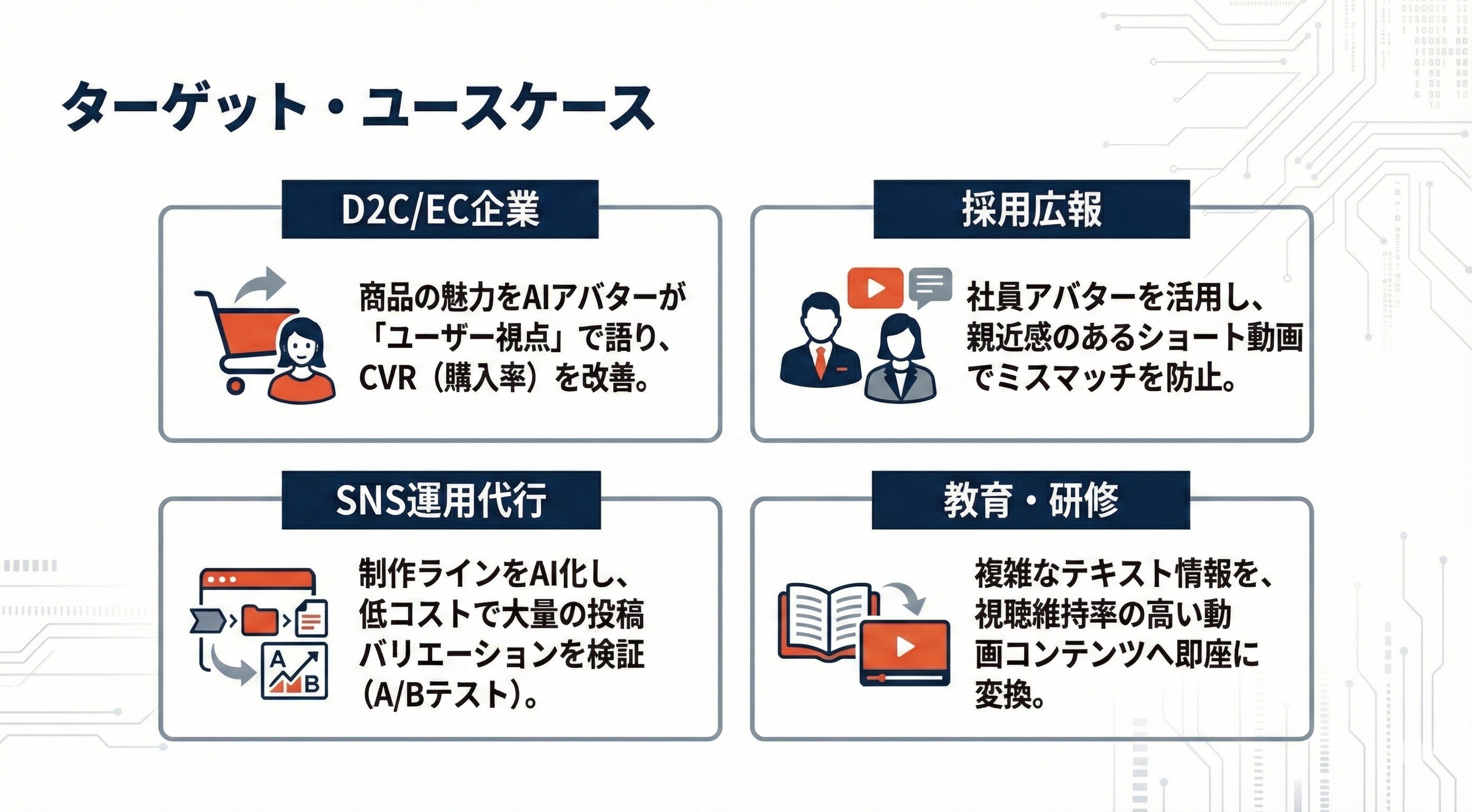 再現性の担保: 属人性を排除し、組織として一貫したトーン&マナーでコンテンツを配信し続けることが可能です。