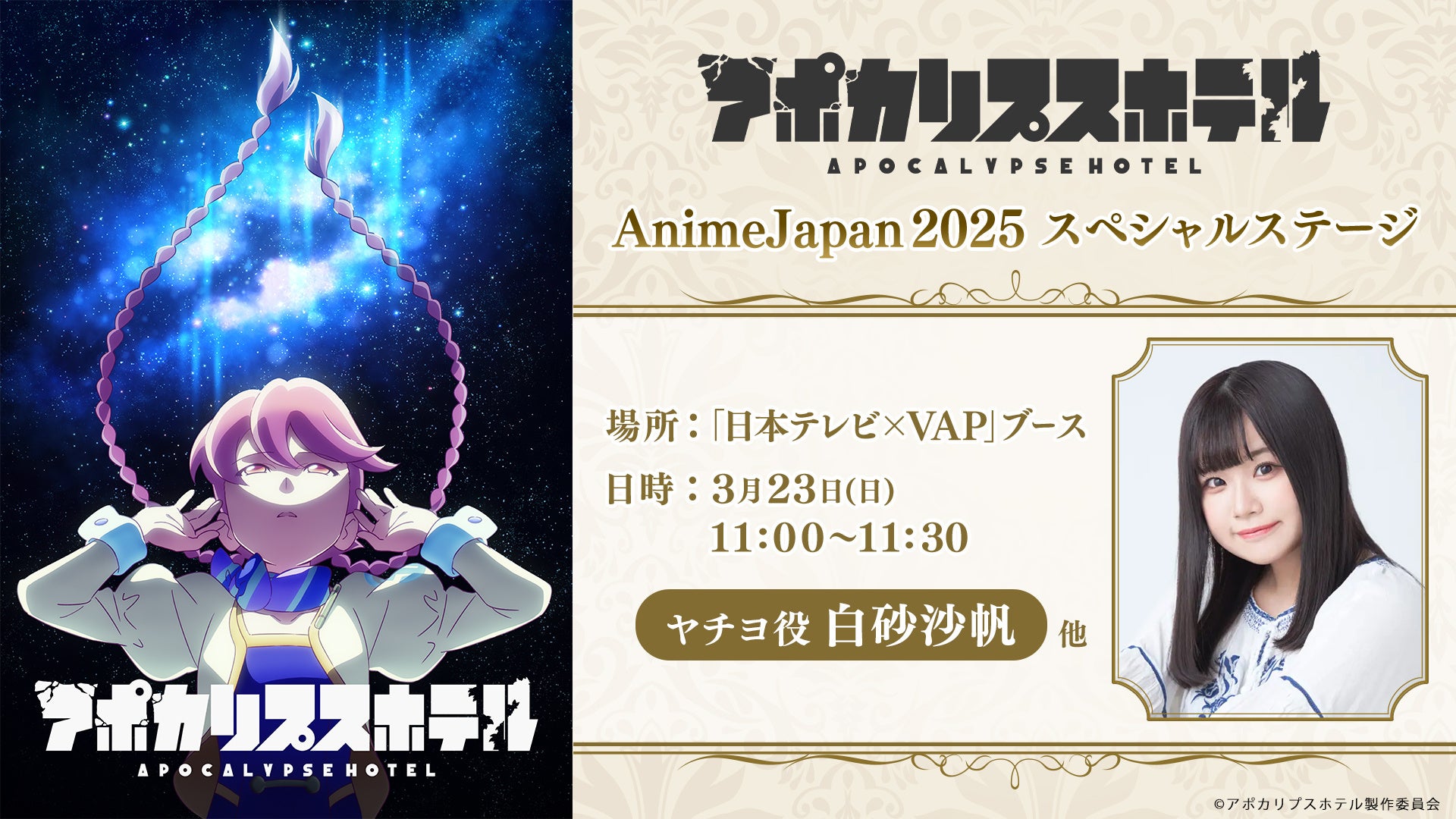 AnimeJapan 2025(https://www.anime-japan.jp/)の「日本テレビ×VAP」ブースでステージの開催が決定いたしました。ホテル『銀河楼』で働くホテリエロボット「ヤチヨ」役を務める白砂沙帆の出演に加え、アニメの新PVをはじめとした放送直前最新情報を公開いたします。
