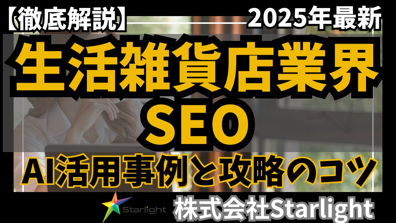 株式会社Starlight(本社:東京都豊島区、代表取締役社長:黒田 真乃介、以下「当社」)は、生活雑貨業界の皆様を対象に「2025年版 生活雑貨業界向けAI×SEOトレンドレポート」を公開いたしました。本レポートは生活雑貨業界がSEOを活用して集客を強化するための最新事例や成功パターン、そして成果に直結する戦略的なAI×SEOノウハウを一冊に集約しています。