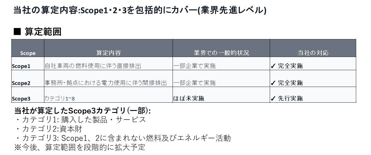 当社の算定内容:Scope1・2・3を包括的にカバー(業界先進レベル)