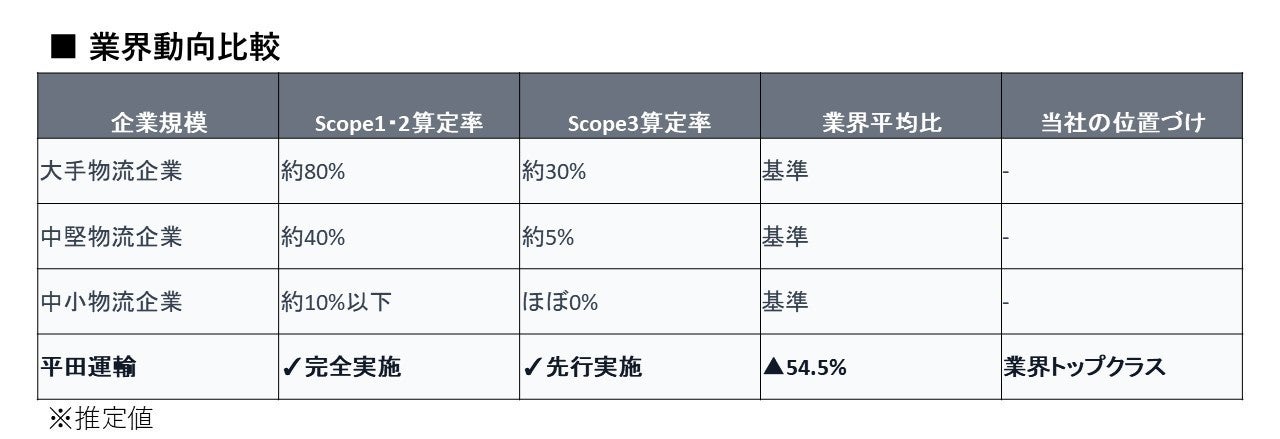・業界標準の創出: Scope3算定という先進事例を示すことで、業界全体の底上げに貢献