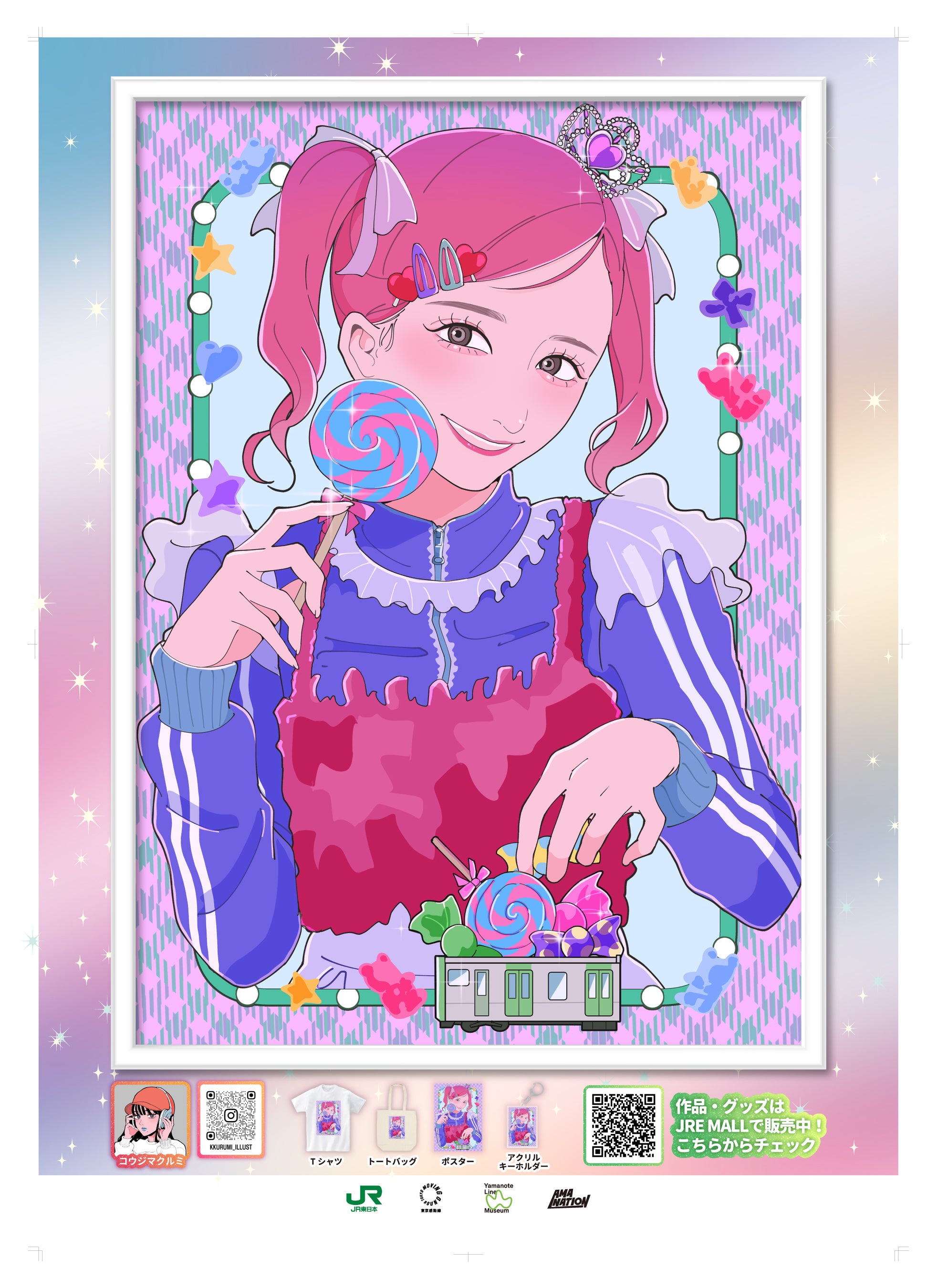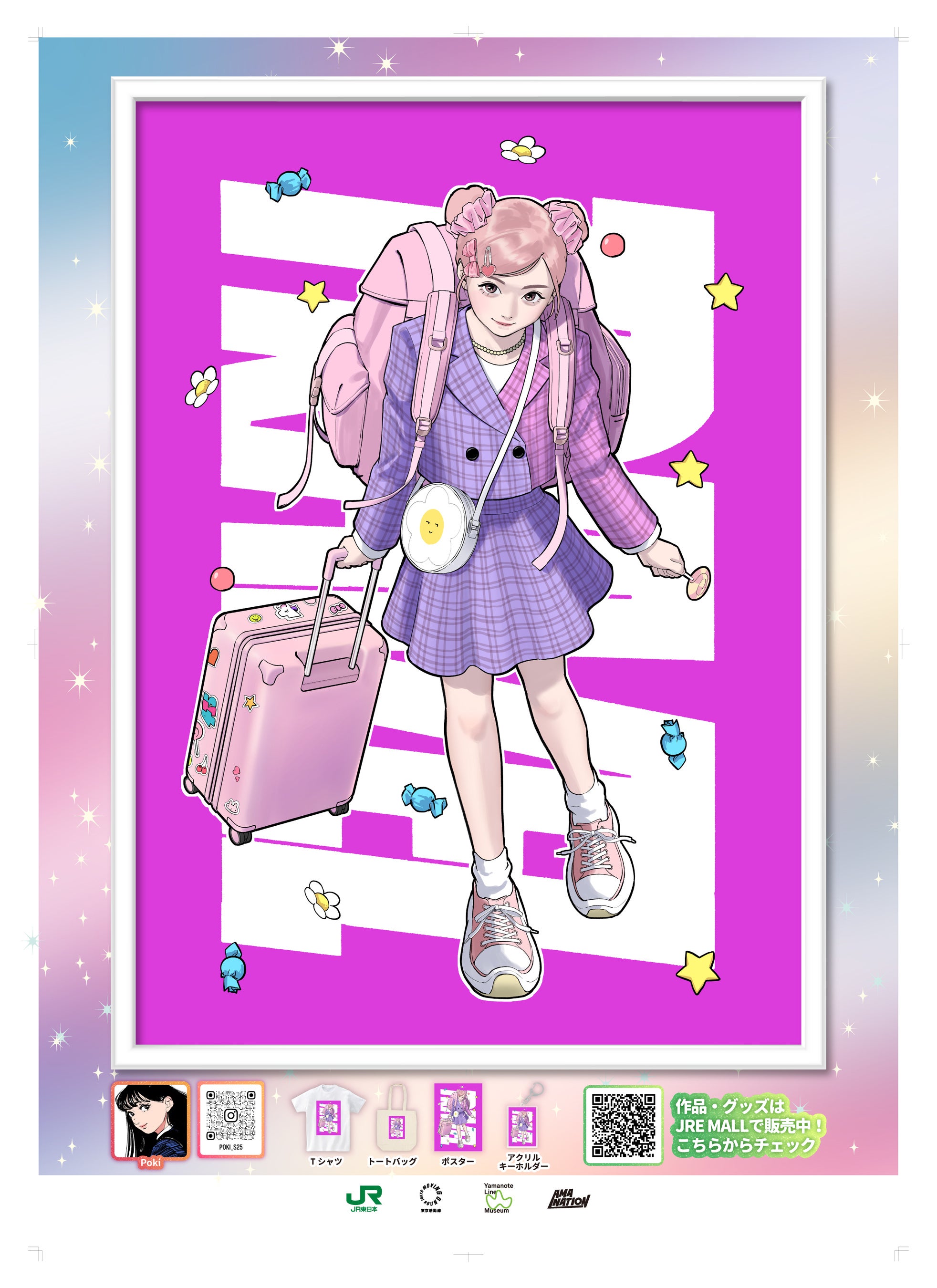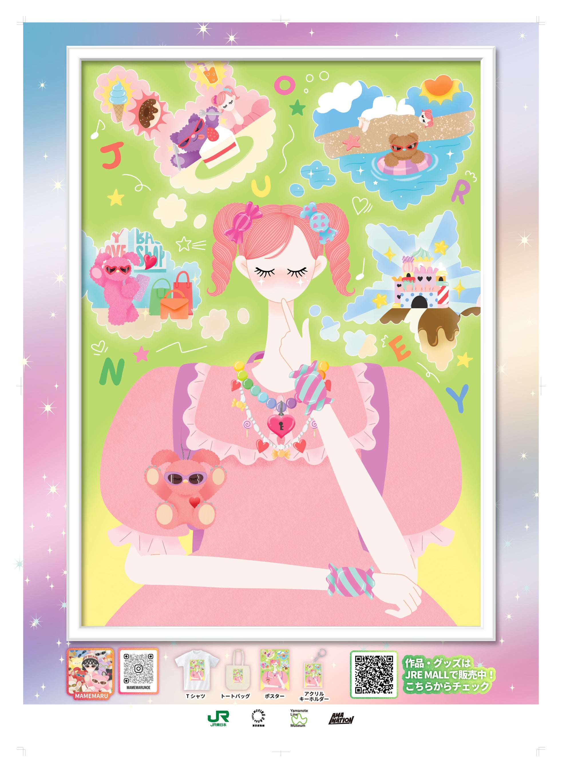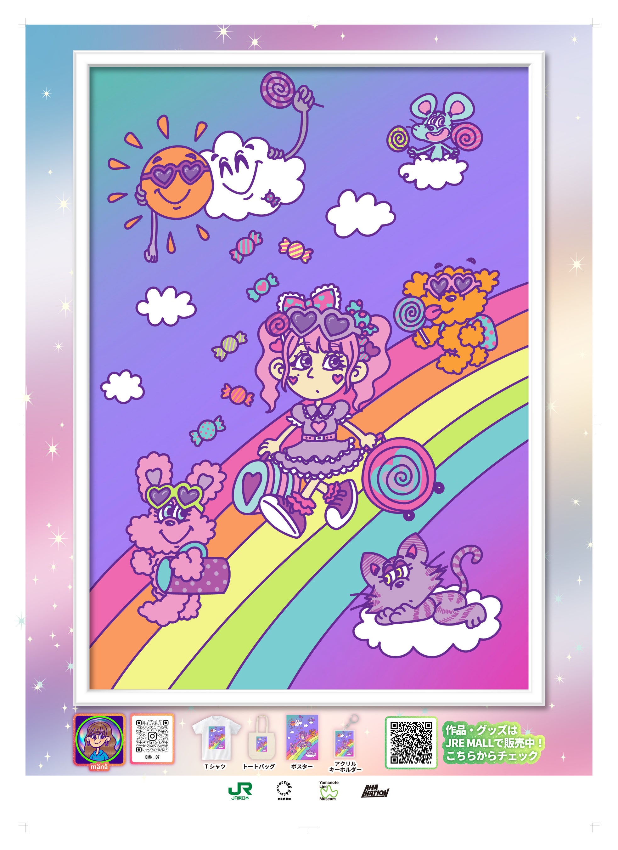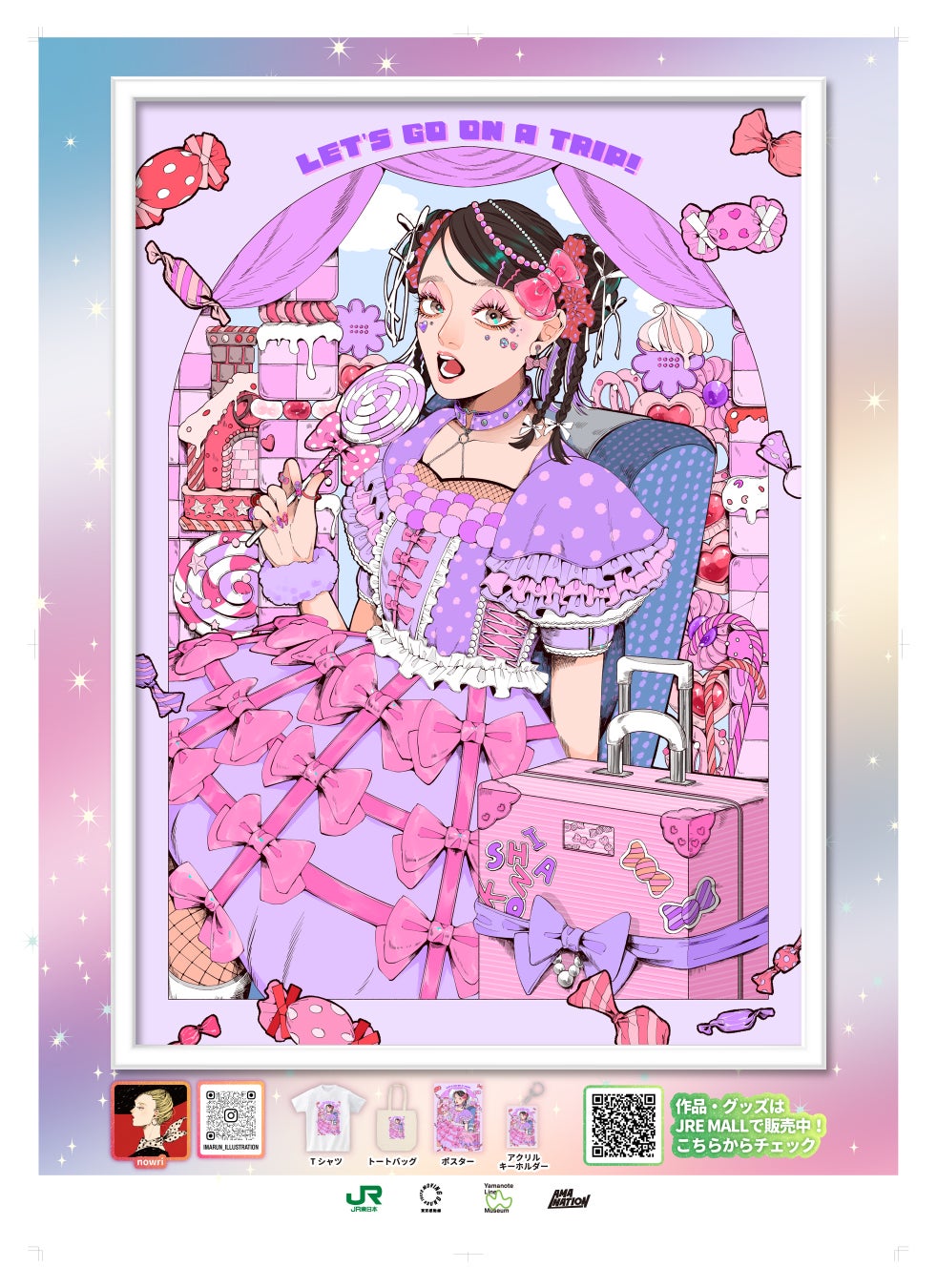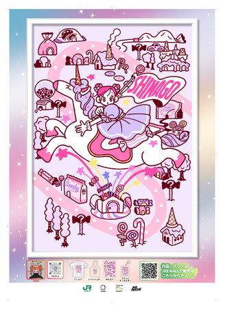 12月1日(月)より山手線15駅にて展示されるイラストは「しなこ、旅に出る!」をテーマにそれぞれのクリエイターが“しなこ”の魅力を独自の表現で描き出し、イラストには“しなこ”のアイコンでもあるキャンディが隠れています。
