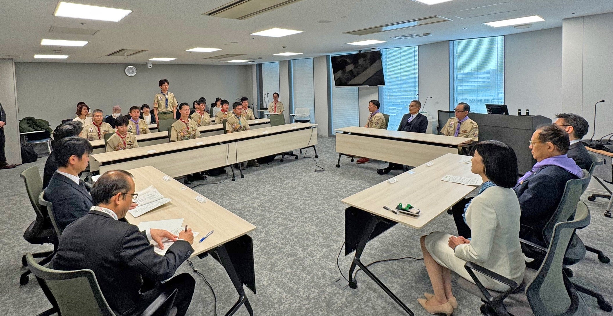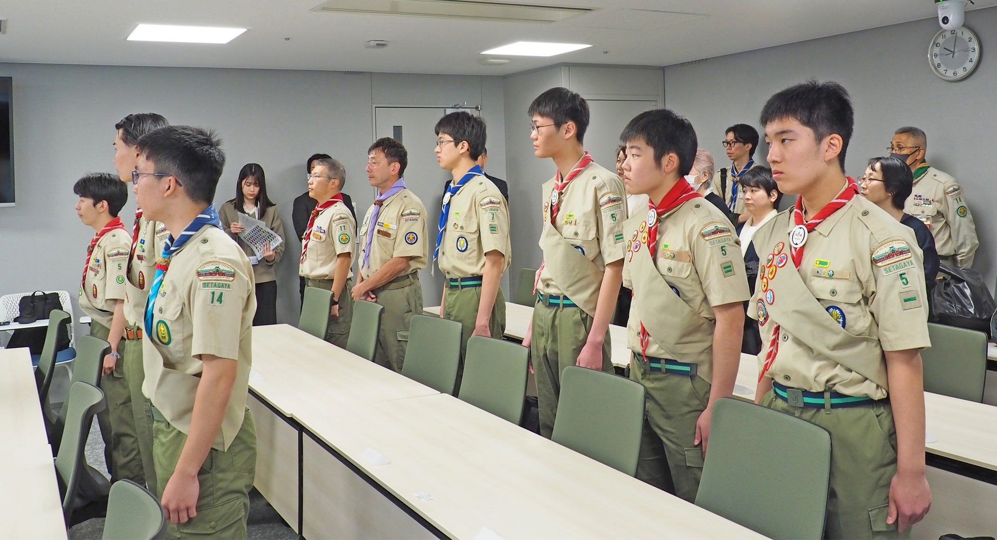 ボーイスカウト「富士スカウト章」の進級者たちが世田谷区長への表敬訪問を実施しました。