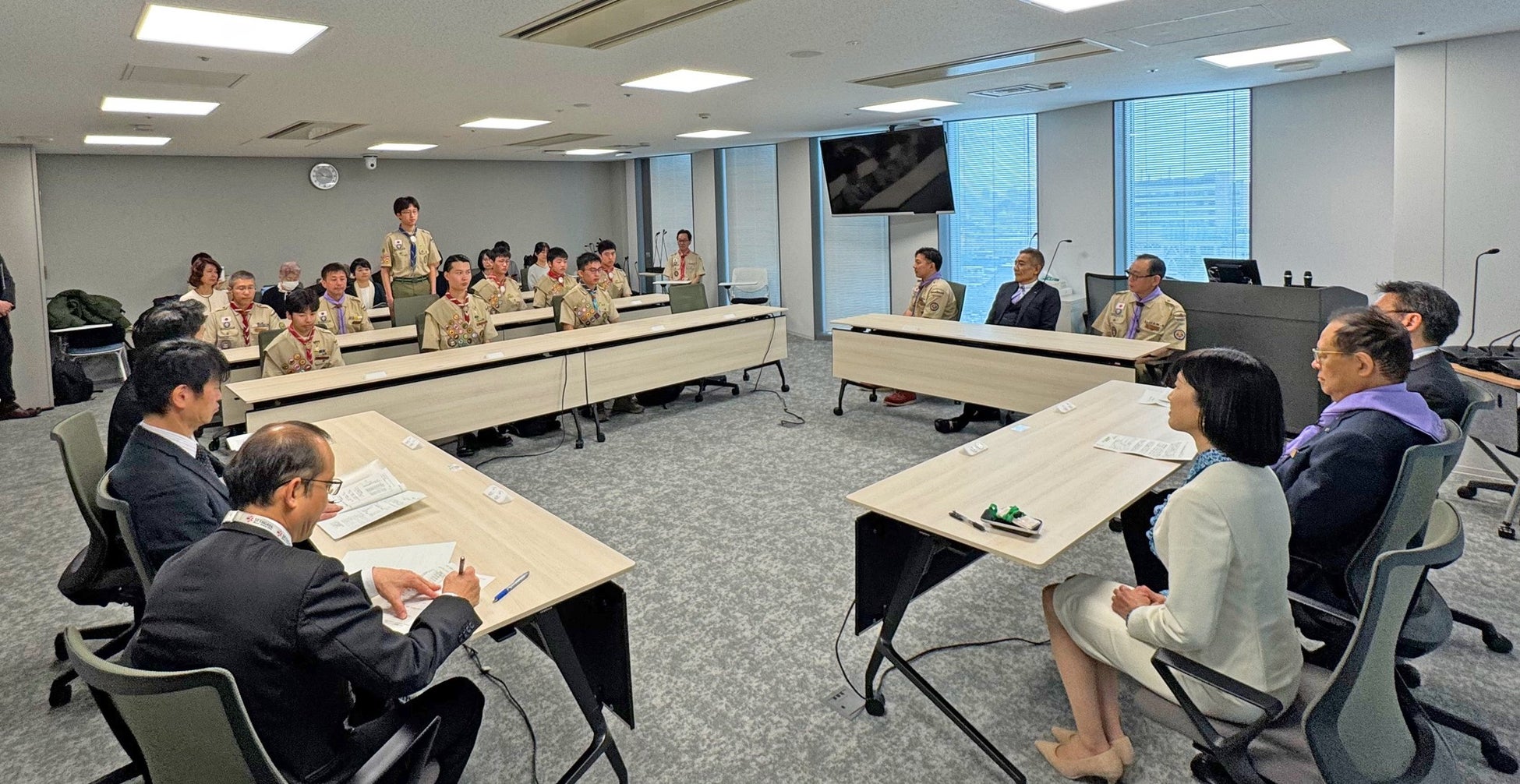 一般社団法人 日本ボーイスカウト東京連盟世田谷地区は、教育プログラムの「富士スカウト章」「隼スカウト章」「菊スカウト章」に進級したスカウトによる世田谷区長への表敬訪問を3月26日に実施しました。