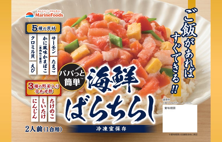 マリンフーズ株式会社(以下「マリンフーズ」)は、水産冷凍商品のパパっと簡単シリーズより、「パパっと簡単海鮮ばらちらし」 を 2025年7月21日以降順次、全国のスーパーマーケットにて販売します。