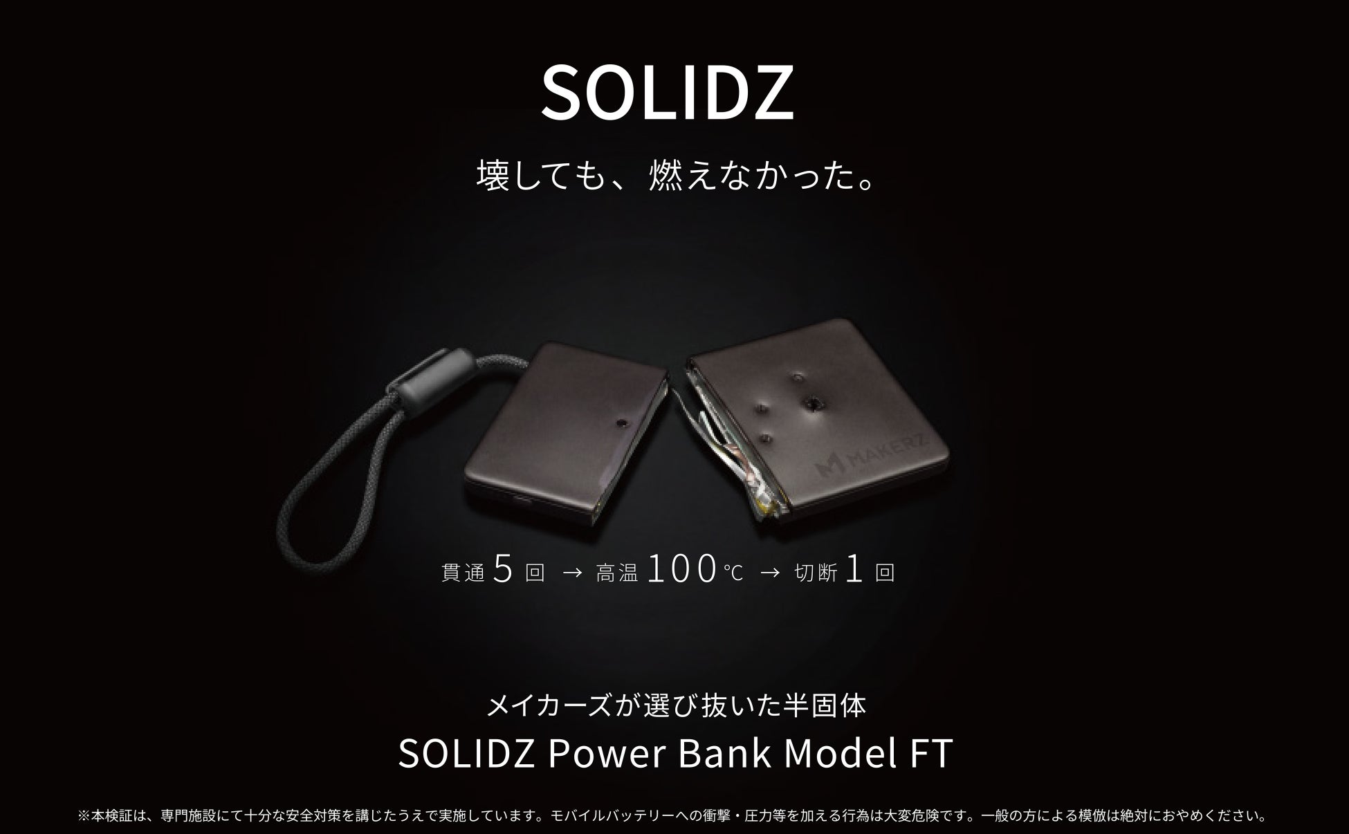【壊しても、燃えなかった。】7種以上の極めて過酷な自社試験を耐え抜いた半固体モバイルバッテリー「SOLIDZ Power Bank Model FT」発売|株式会社メイカーズ(MAKERZ)