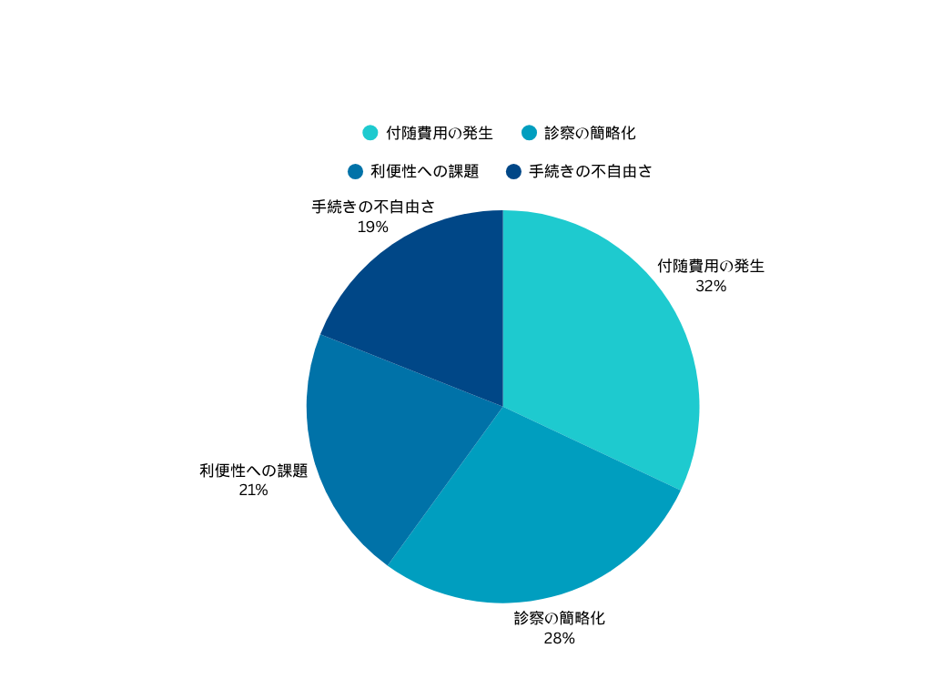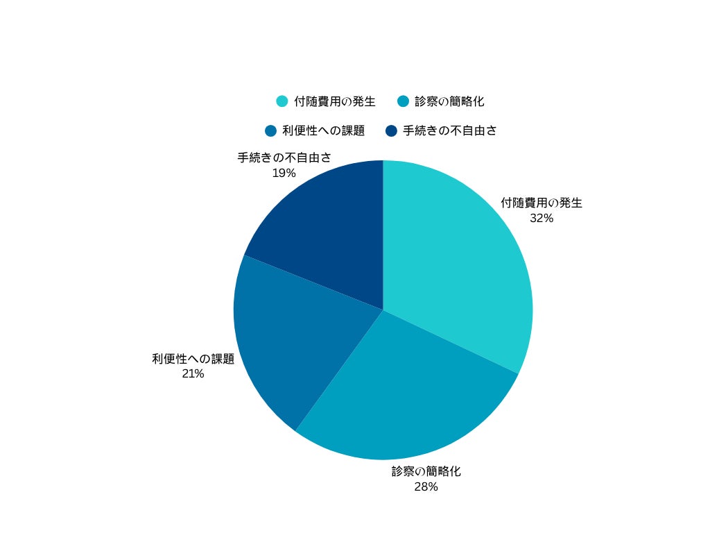 診察の簡略化(28%): 効率重視による相談時間の短縮、医師とのコミュニケーション不足。