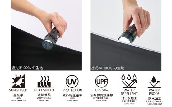 ②遮光率・UVカット率100%・遮熱指数最高値65%以上のS65+評価を取得