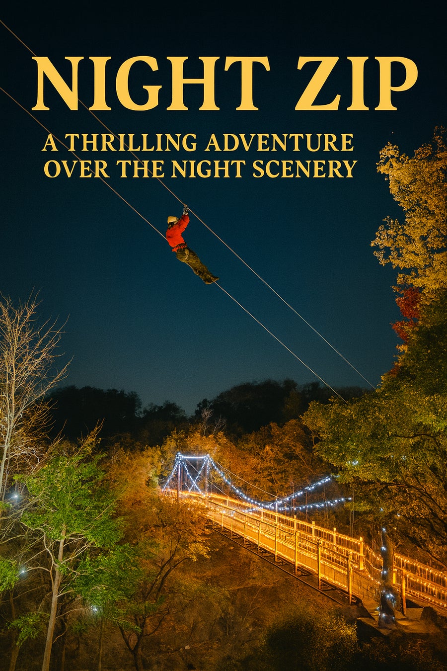 ライトアップされた清流里山公園を背景に、暗闇の中を滑走するジップライン。全長333mを一気に滑ります。昼間には味わえないスリルと開放感が、心を解き放ちます。