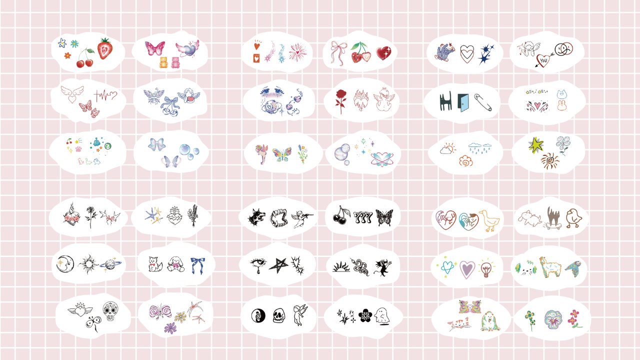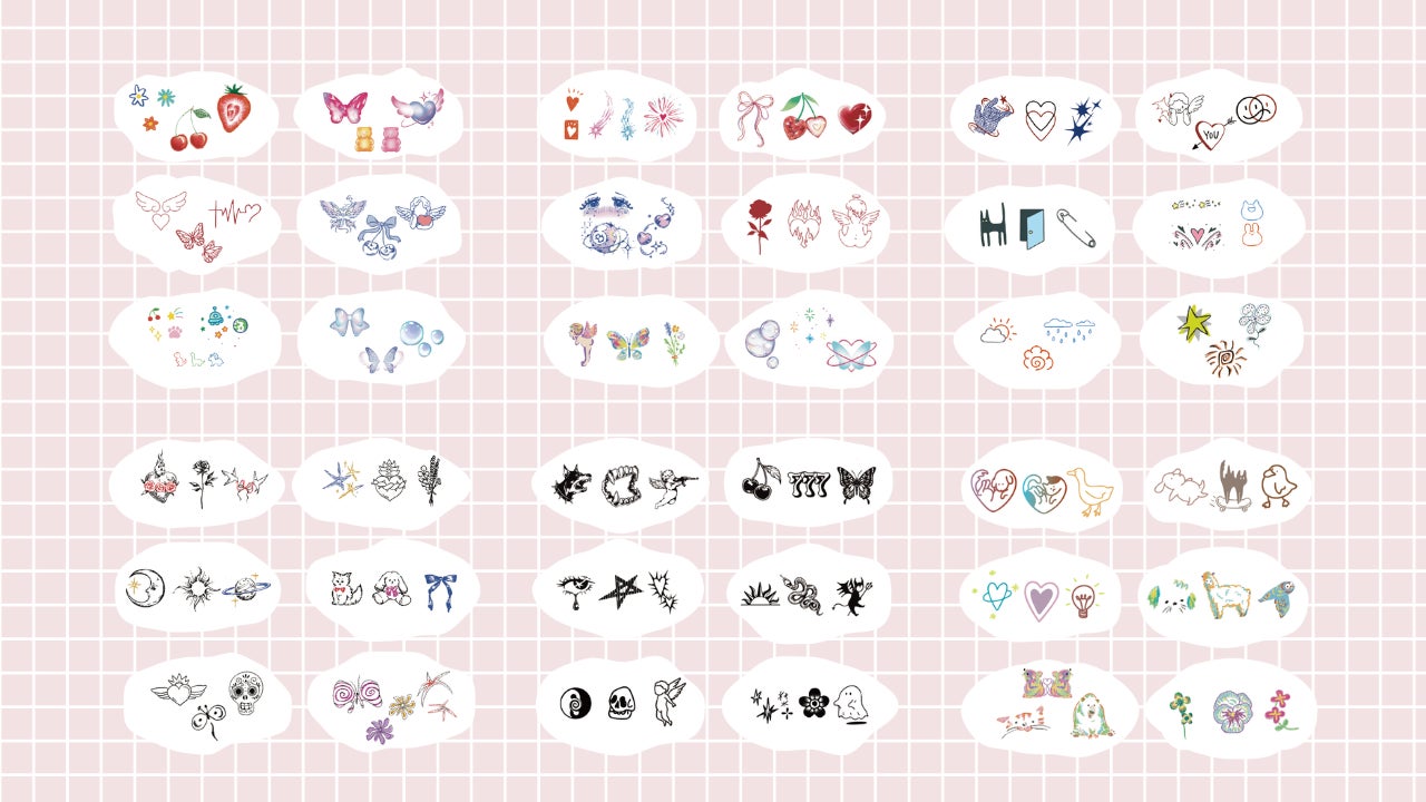 メイン商品は、貼ってすぐに楽しめる一般的なタトゥーシールとは異なり、時間の経過とともに肌に発色し、約10日間ほどかけて徐々に薄くなっていくティントタイプのタトゥーシール。