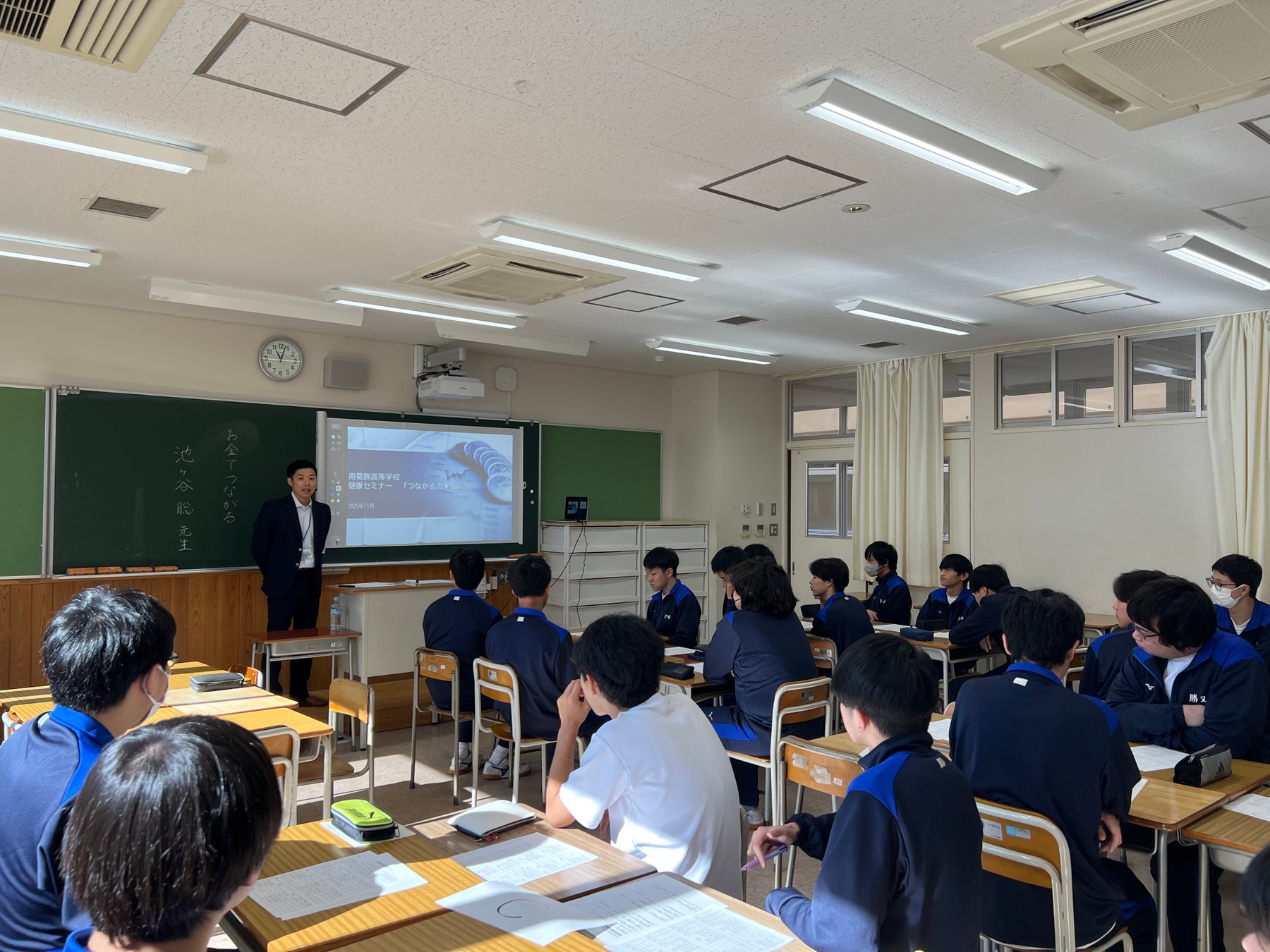 今回の出前授業は、同校の健康セミナー「つながる力★元気塾」の一環として行いました。同セミナーは、同校の先生方が「健康とは単に病気や障害がないこと、健康診断で異常がないことではなく、夢や目標に向かう力を持つこと、すなわち『健康力』を育むことが大切である」という強い思いから企画されたものです。そして、金融教育について「将来お金に不安を抱えることなく、お金と上手に付き合い、安心して生活できる力を身につけてほしい」、「働くだけではなく、お金の増やし方や使い方を学び、自分の生活や夢に活かせる知識や判断力を育んでほしい」という先生方の思いに、当社も深く共感し、今回出前授業を実施いたしました。