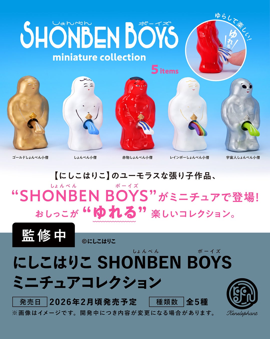 郷土玩具の「張子」を巧みに使った張り子作家・にしこはりこ氏の作品で度々登場する『しょんべん小僧』がカプセルトイに!