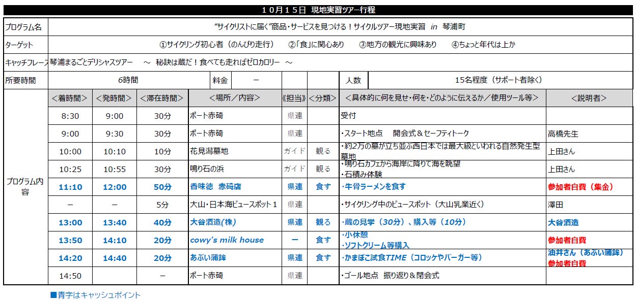 ・内 容:琴浦町内の事業所や観光スポットを巡るサイクリングツアーを実体験することで