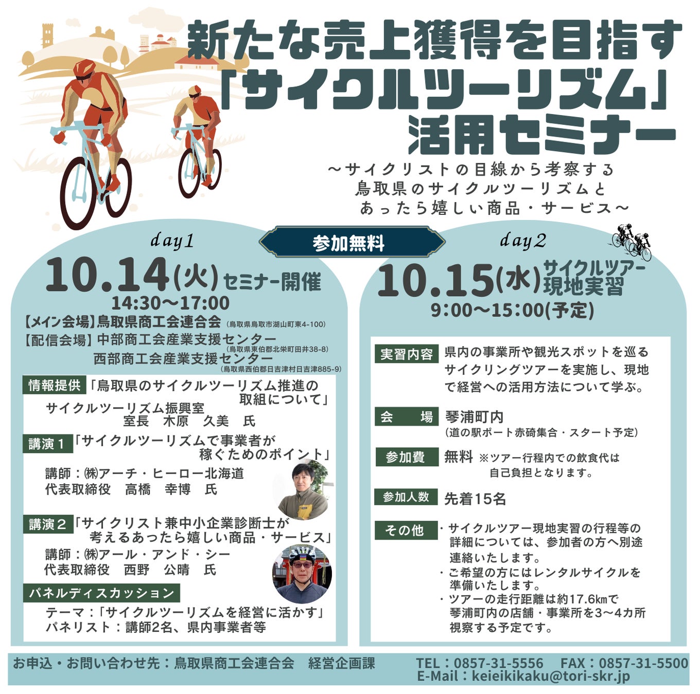 【初開催】新たな売上獲得を目指す「サイクルツーリズム」活用セミナー ~サイクリスト目線から考察する鳥取県のサイクルツーリズムとあったら嬉しい商品・サービス~参加者募集!