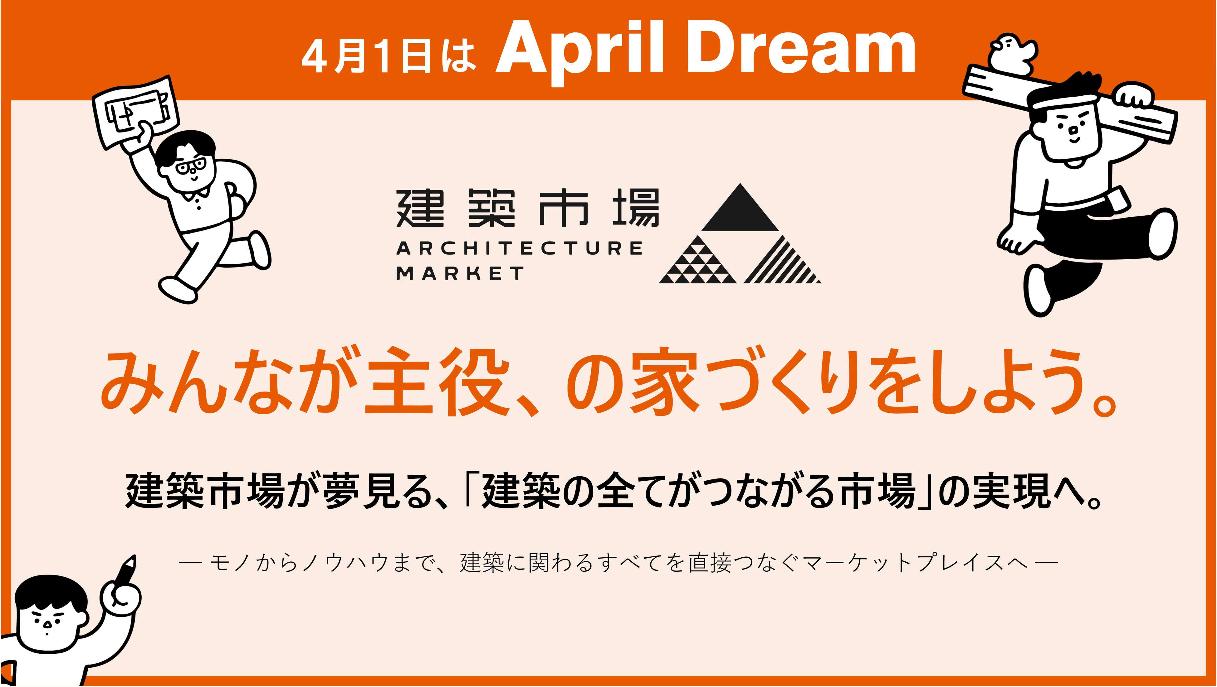 当社は、4月1日を夢を発信する日にしようとする April Dreamに賛同しています。このプレスリリースは「建築市場株式会社」の夢です。