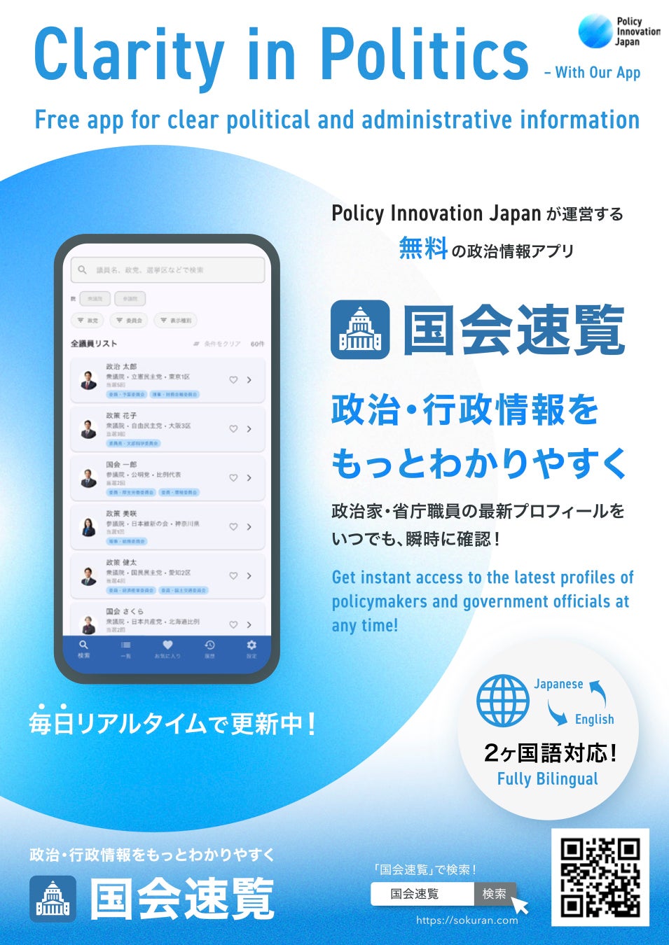 「国会速覧」は、政策や行政の情報をもっと身近に、そして誰もが公平にアクセスできるようにすることを目指して開発しました。