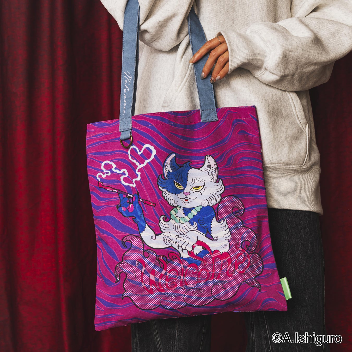 ロングTシャツやトートバッグ、ドリンクホルダーといった普段使いしやすいアイテムには、まるで妖怪絵巻から飛び出してきたような、躍動感あふれる化け猫たちのイラストが落とし込まれています。