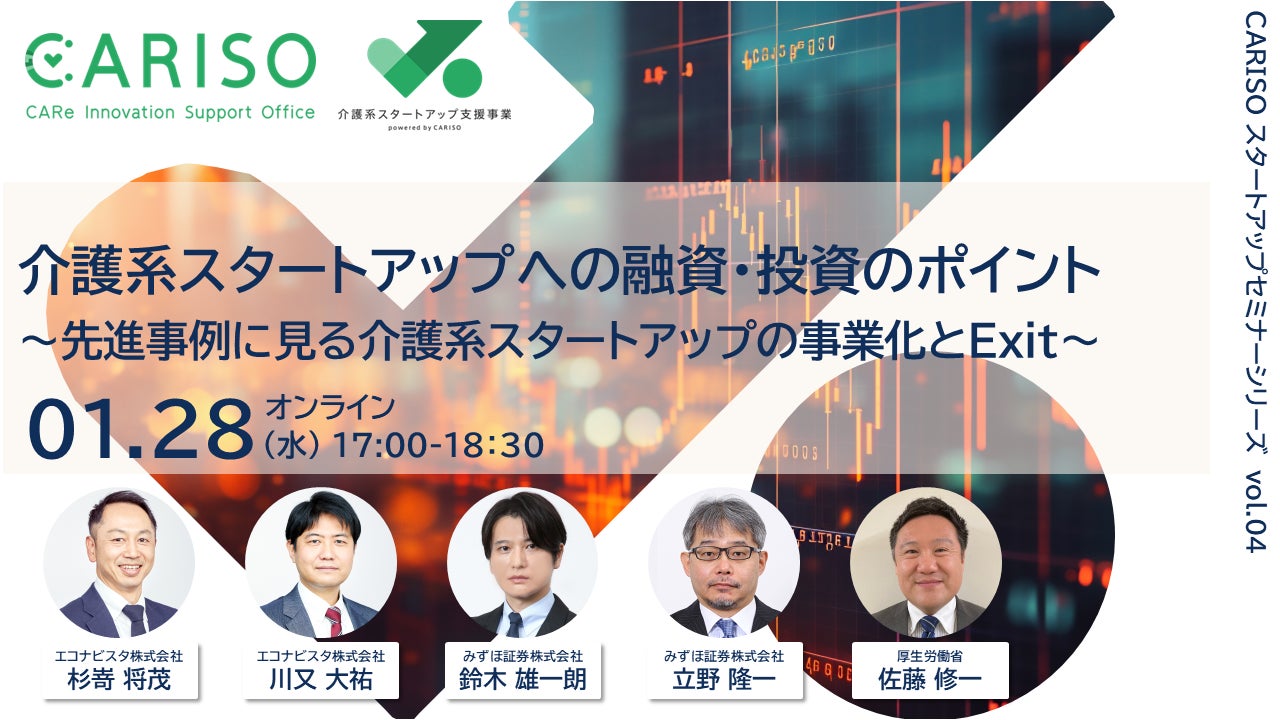 「CARISOスタートアップセミナーシリーズ vol.04:介護系スタートアップへの融資・投資のポイント ~先進事例に見る介護系スタートアップの事業化とExit~」を開催します