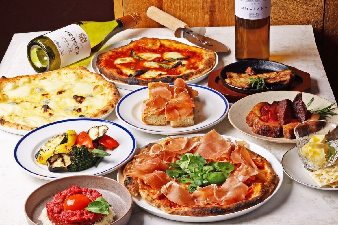 お店の窯で焼き上げる本格的なナポリピッツァがなんと食べ放題で楽しめます。さらに圧巻の熱々鉄板チーズや黒毛牛希少部位のステーキなどの本格イタリアンも食べ放題です。