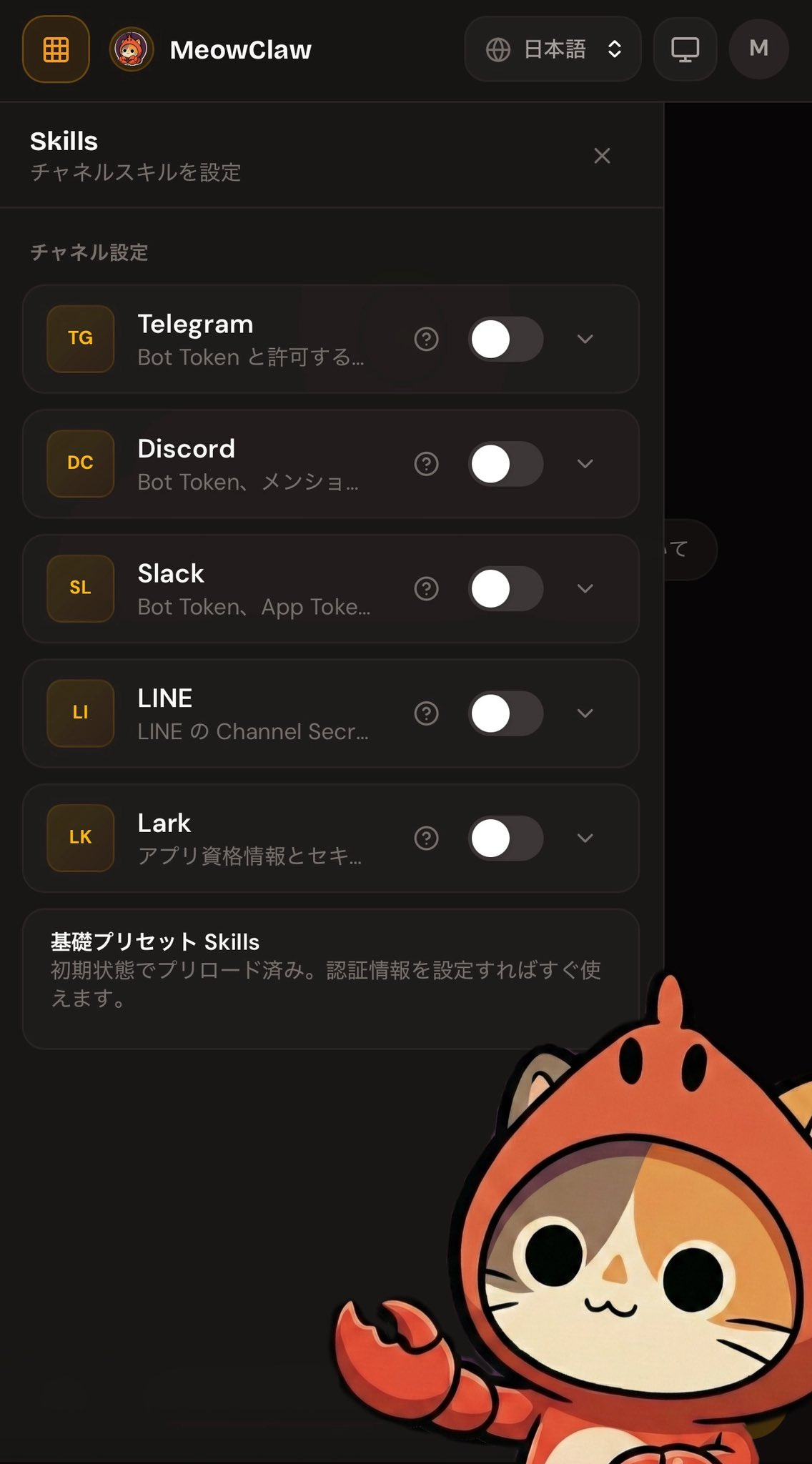 その結果、こうしたツールは多くの場合、一部の技術者や愛好家のための“実験的ツール”にとどまっています。MeowClawの登場は、この見えない技術の壁を取り払うことを目的としています。