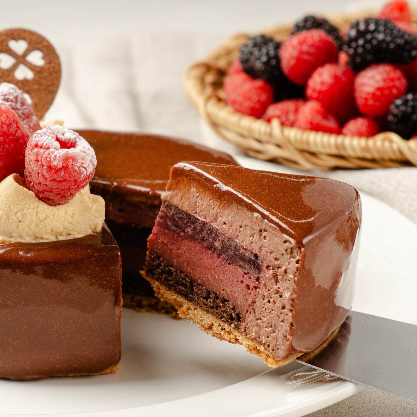 コク深いブラックベリーのショコラムースに、フランボワーズジュレとクリームの華やかさを添えて。