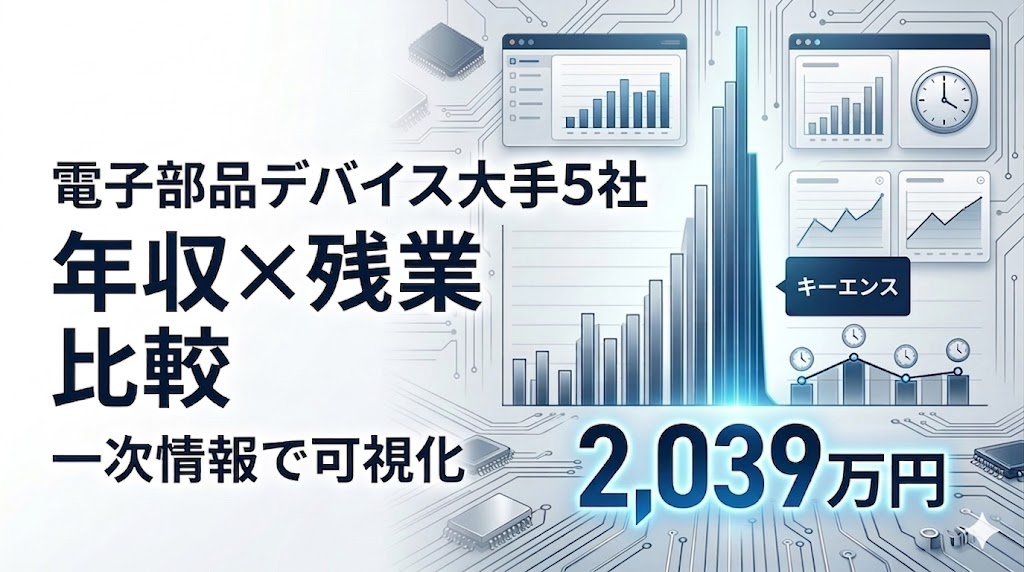 【人的資本調査:電子部品・デバイス】大手5社の年収×残業を一次情報で比較|キーエンス2,039万円、残業平均14.35時間