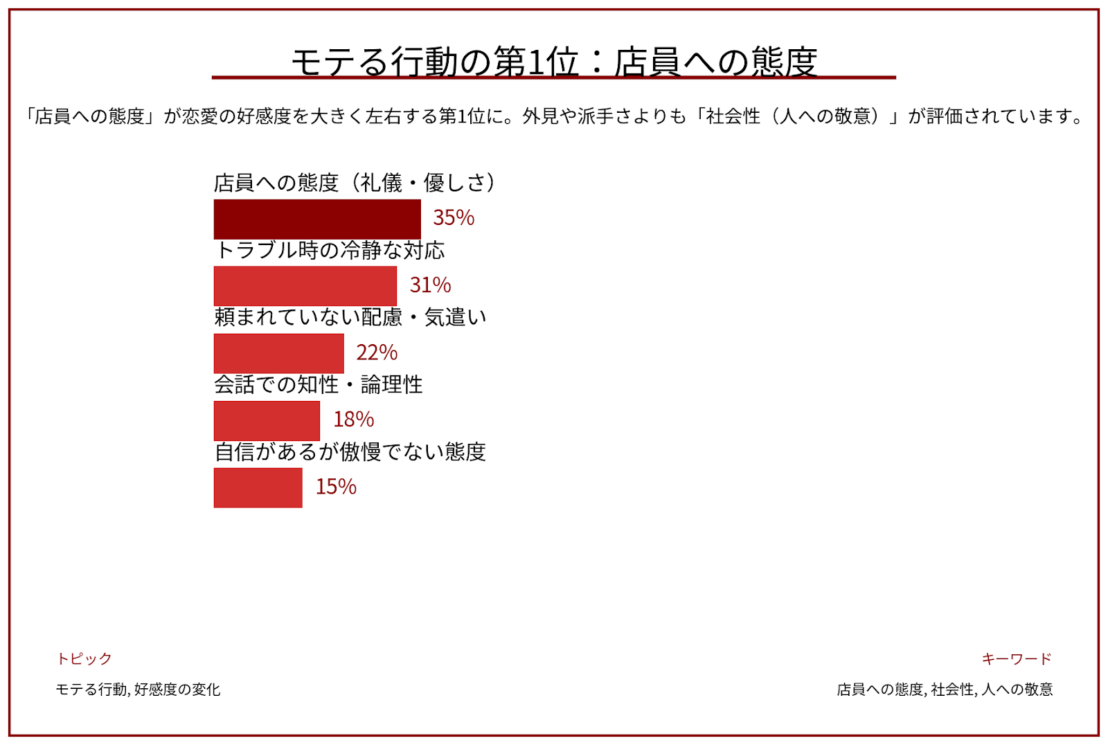 ■ 調査テーマ②:モテる行動の第1位は「店員への態度」