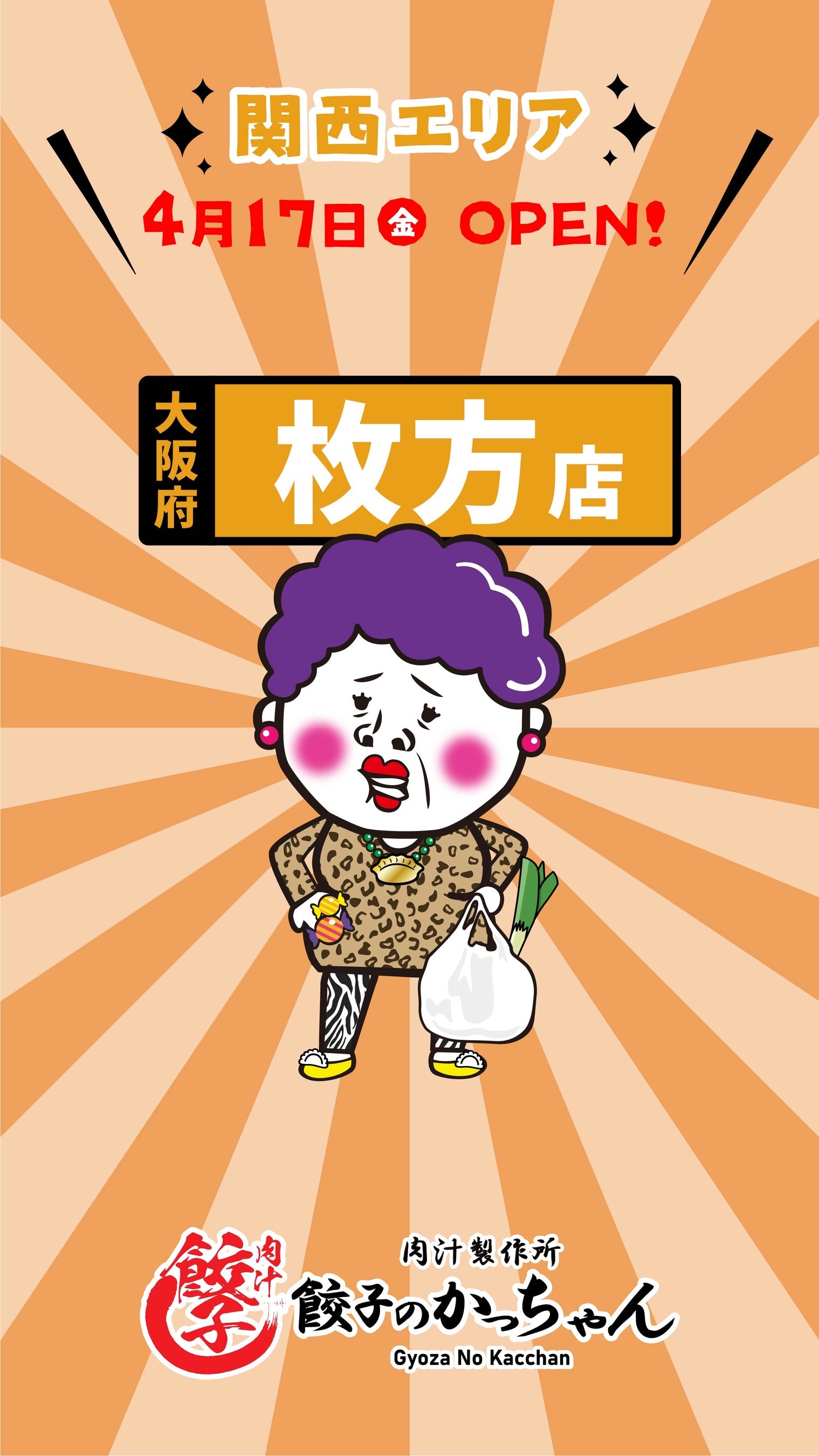 4月17日(金)にSNSや口コミで絶大な人気を誇る「肉汁製作所 餃子のかっちゃん 枚方店」を大阪府枚方市にオープンします。京阪「枚方市駅」から目とはなの先に広がるのは、全100席を完備した活気あふれる開放的な空間。一歩足を踏み入れれば、スタッフの威勢の良い声が、訪れる人々を日常の喧騒から解き放ちます。利用シーンは自由自在です。平日の夕暮れ時、仕事の疲れを癒やすためにサクッと立ち寄る「ひとり飲み」はもちろん、100席という広さを活かした大人数での打ち上げや賑やかな大宴会にも最適です。また、土日祝日は正午から営業しているため、お買い物帰りのご家族連れや、明るい時間から贅沢に楽しむ「昼飲み」にも最高の舞台をご用意しました。「美味しいものを、どこよりも安く、最高の活気とともに」。枚方の街に新たな笑顔と賑わいをつくる「餃子のかっちゃん 枚方店」で、皆様のご来店を心よりお待ちしております。
