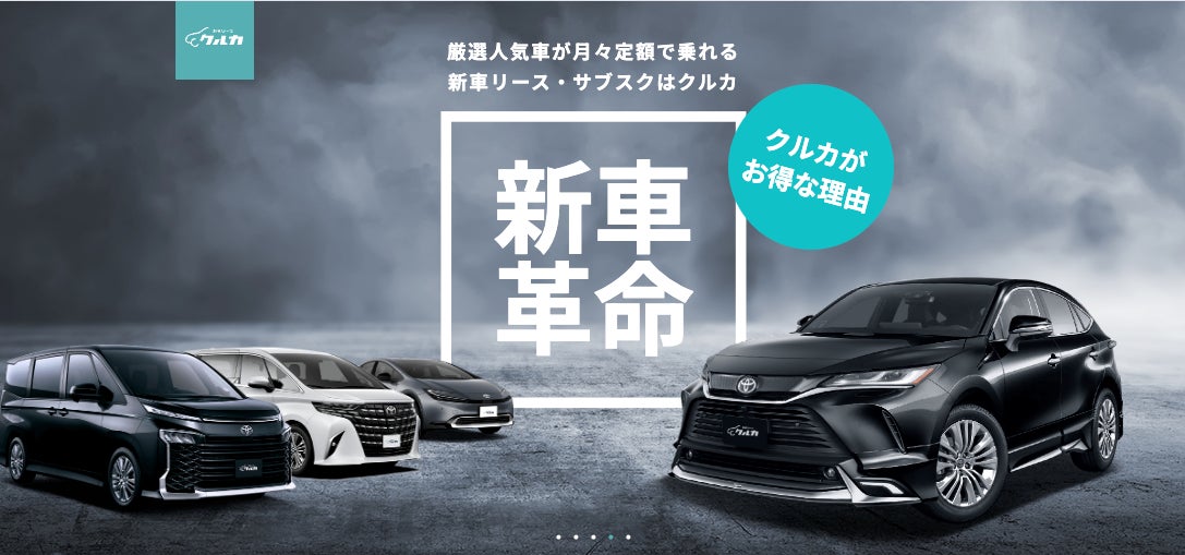 新車カーリース「クルカ」は、頭金0円、ボーナス払い0円、車検、自動車税不要の月々定額でご利用いただける、 最低価格保証のカーリース(サブスクリプション)サービスです。