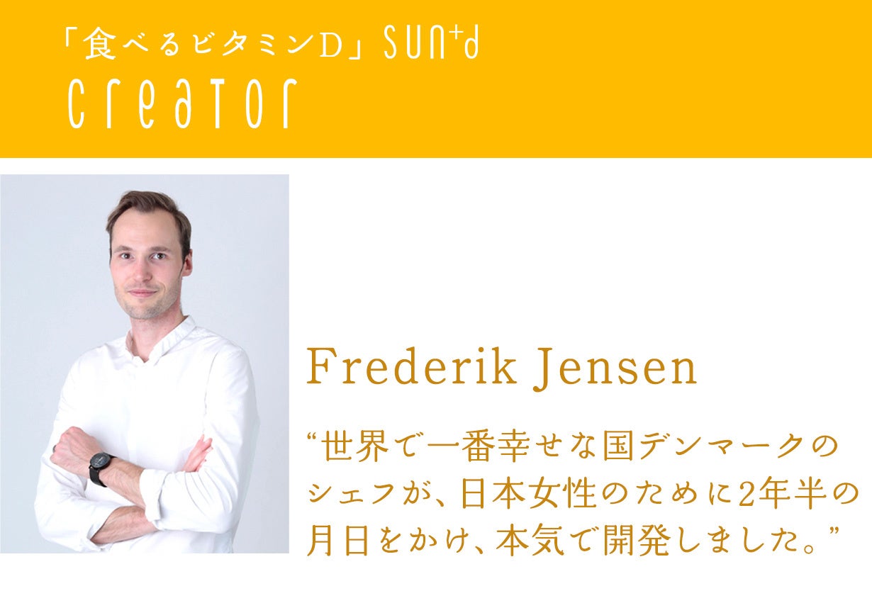 女性たちの太陽不足解決への道を切り開いてくれたのは、世界一幸せの国で知られるデンマーク出身のシェフ/食品開発者フレデリック ジェンセン。子育てと仕事に追われて自分のケアができていない妻レナのために何かできないかと美容健康食品を探すも見当たらず開発を決意。