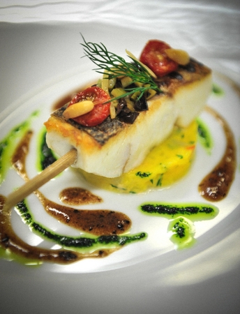 スズキ フヌイユの枝をさして香ばしくグリエにし、