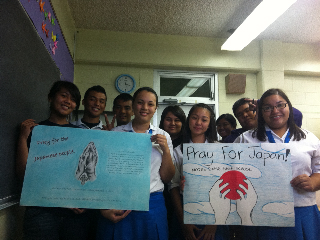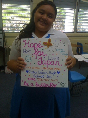 グアムの高校生からは全部で20枚のカードが届き、今回の震災の影響で避難や転校を強いられている日本の高校生に向けた激励のメッセージが綴られ、復興への祈りが込められています。これらの寄せられたメッセージカードは、福岡県庁にて掲示される予定です。