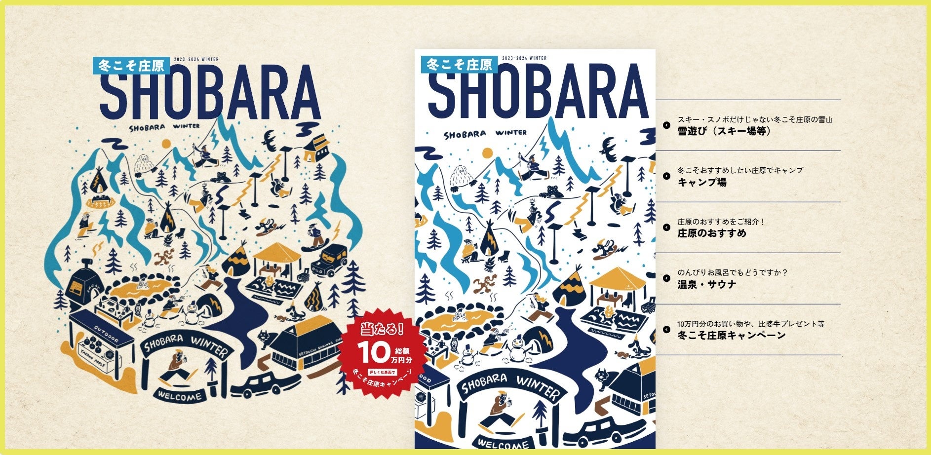 広島県庄原市は、スキー場もスノートレッキングもスノーキャンプ、温泉、宿、グルメ、備北イルミ、雪合戦、美しい雪景色と、冬を満喫する楽しみ方がいっぱい!この魅力を一冊にまとめたパンフレットと特設サイトを制作しました。
