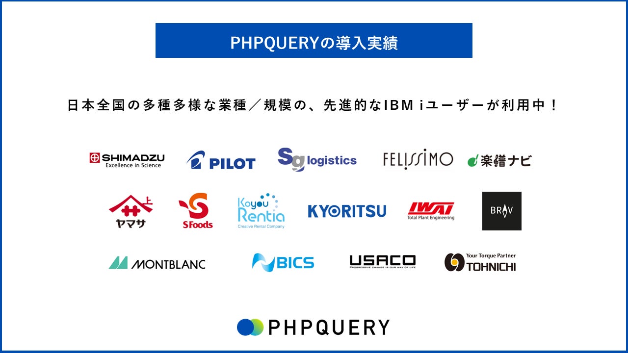 PHPQUERYは、IBM i をお使いのお客様の声をもとにイチから開発し、2014年に1社目のお客様にご契約いただきました。