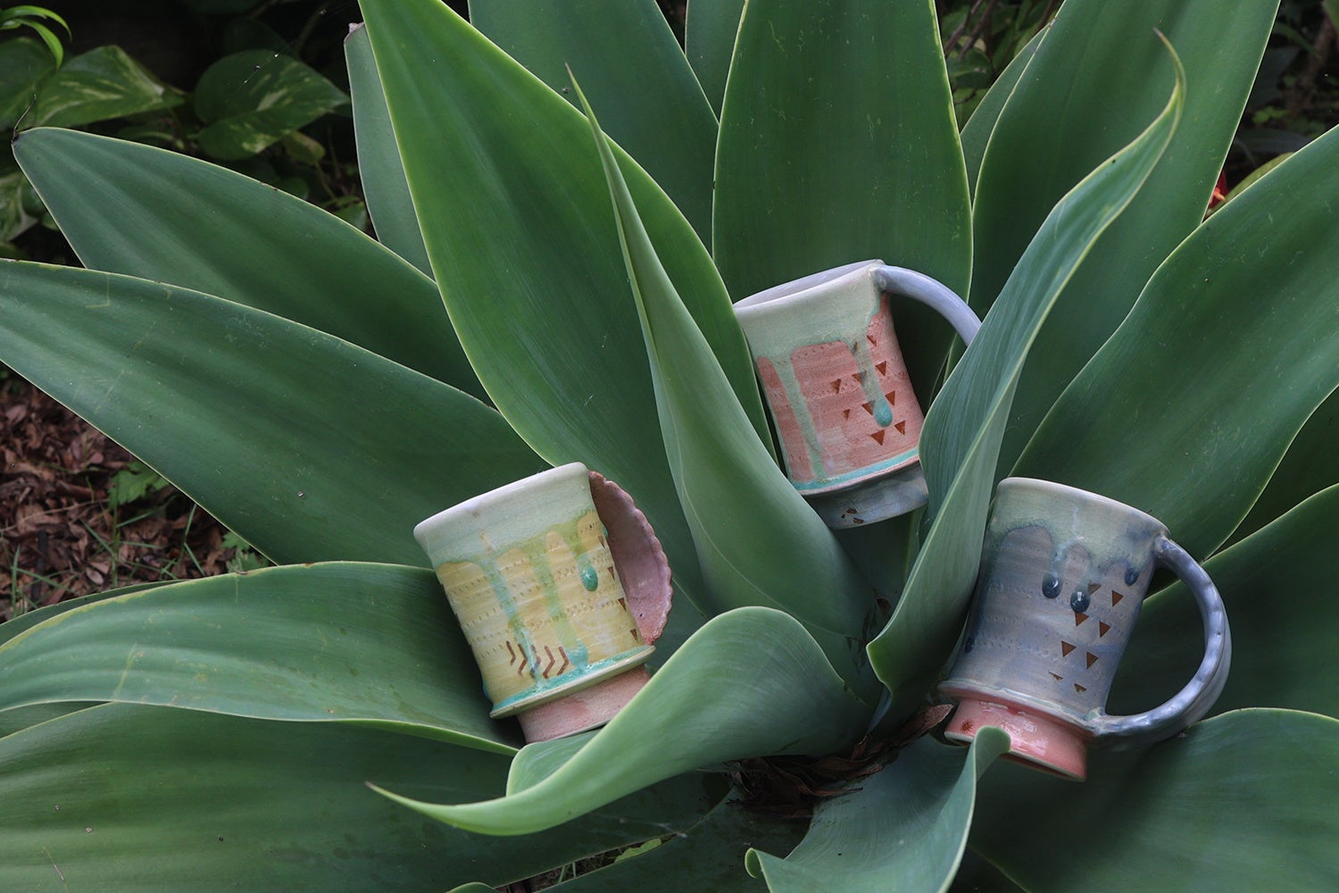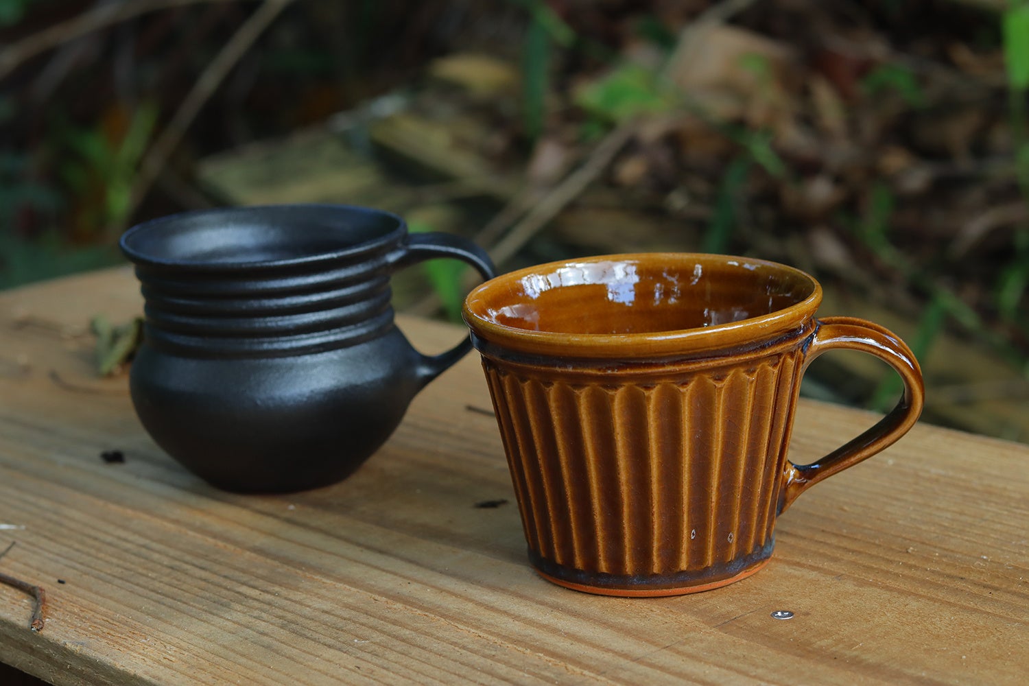 【森製陶所】沖縄本島北部、東村高江の自然豊かな工房で作陶する森貴希さん。地元高江の土を使い、様々な釉薬や焼き方を試行錯誤しながら生み出される器は、まるでやんばるの自然の美しさが投影されたよう。毎日の生活に寄り添ってくれる、シンプルながら味わい深いカップが数量限定で並びます。