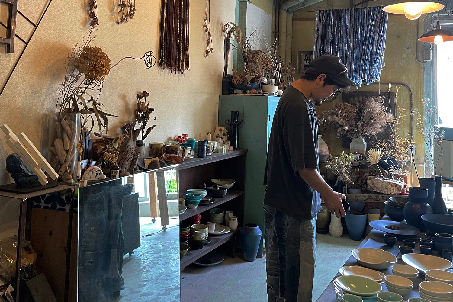 2004年沖縄県立芸術大学卒業。那覇市の壷屋に工房を構え、日本各地の百貨店やギャラリーにて展覧会を開催しながら母校で後身の指導にもあたるなど、やちむん新世代をけん引する本田伸明さん。器、Artwork、飲食店とのコラボレーション、オーダーメイドなど、陶芸の持つ力を使って、たくさんの人達とつながり、遊び、働くがモットー。