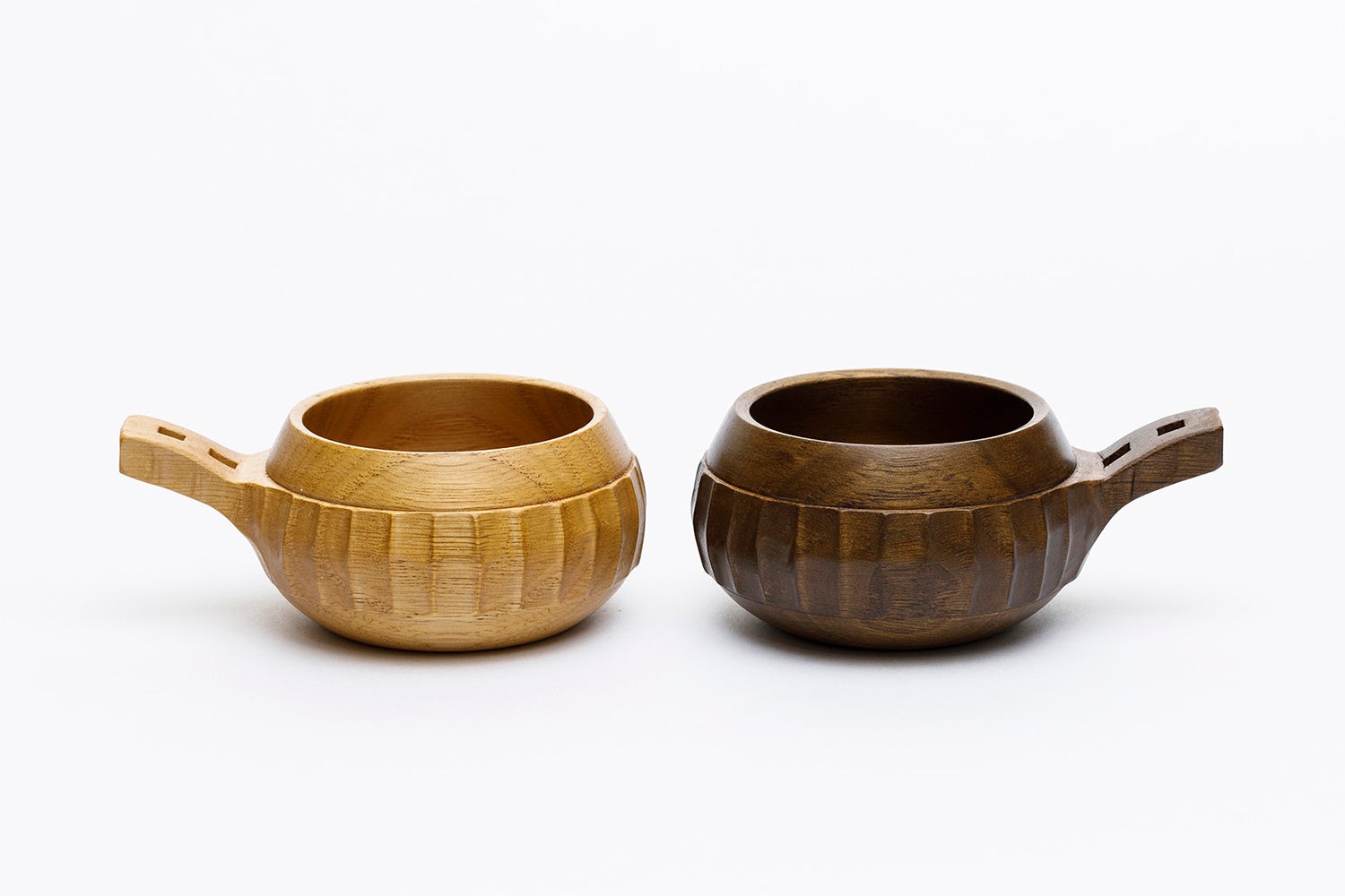 【たま木工】森製作所と同じく東村に工房を構える玉元利幸さん。独自の木目や色、香りを楽しめる沖縄の木。玉元さんはそんな沖縄の木だけで作品を作り続けています。手に取った時の温かさ、柔らかさ。使い込むほどに艶が増し、手に馴染んでいく、一刀一刀心を込めて作られたカップを数量限定でご用意します。
