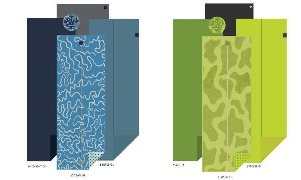 コレクションには、ジェリーのシグネチャーであるカモフラージュ柄を特徴とするManduka PRO ヨガマット(6mm)、PROlite ヨガマット(5mm)とYogitoesヨガタオル、そして彼のサーフボードデザインから着想を得た、軽量で持ち運びに便利なeKOスーパーライトトラベルマットが展開されています。