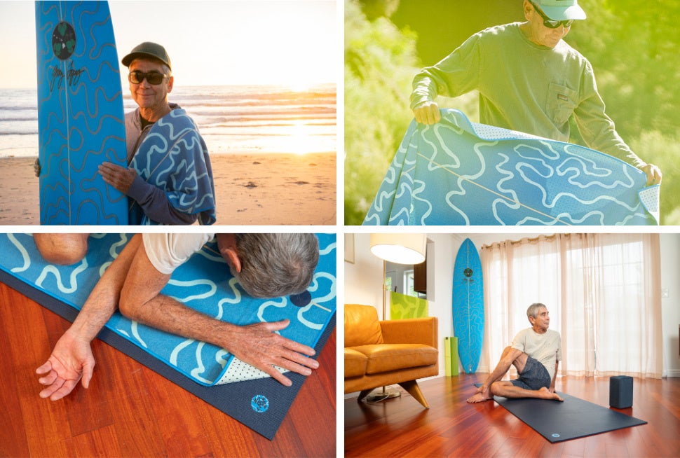 世界的レジェンドサーファーとして知られ「ミスター・パイプライン」の異名を持つジェリー・ロペス氏は サーフボードシェイパーであり、海洋環境保護活動家であり、そしてヨギーとして広く知られています。Mandukaは ロペス氏に敬意を表し、彼のシグネチャーであるサーフボードのプリントにインスパイアされたヨガマットとヨガタオルの特別コレクションを発売しました。