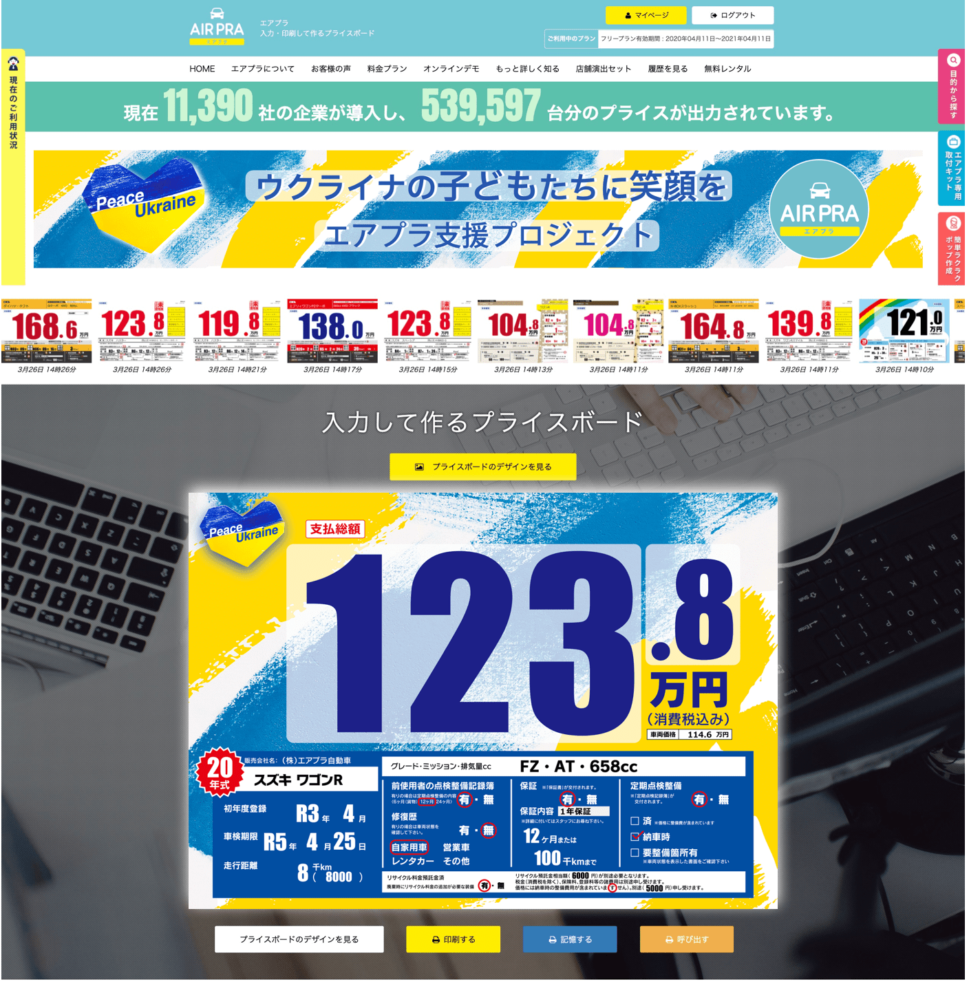 【ウクライナ人道支援】エアプラ、自動車業界向けプライスボードをダウンロードすると1枚につき10円が寄付される人道支援を実施